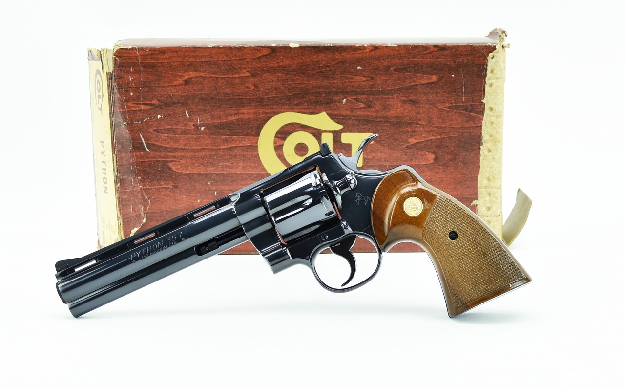 Colt Python .357 Magnum caliber revolver. 6” blued model manufactured in 1974 in excellent condition with box.