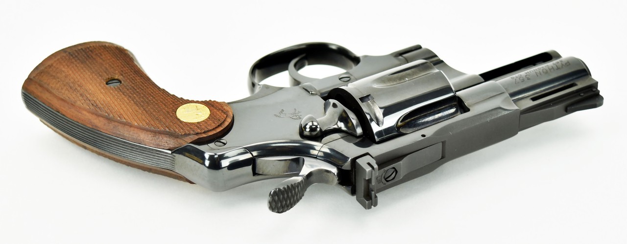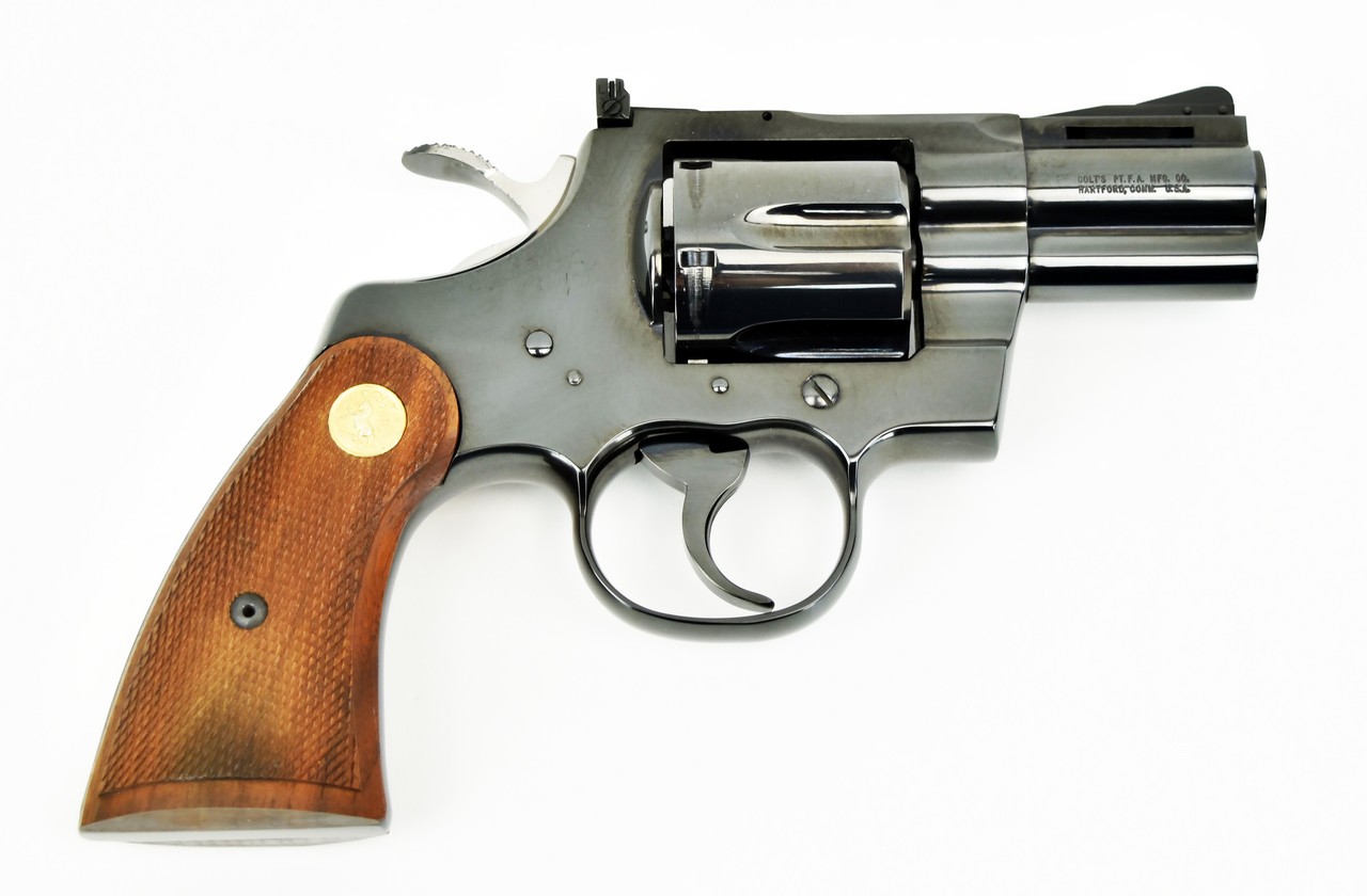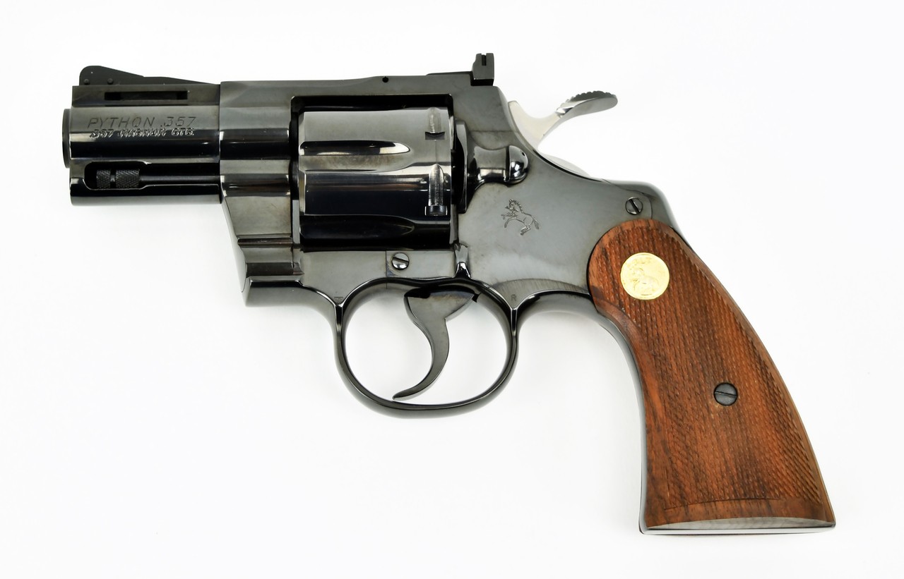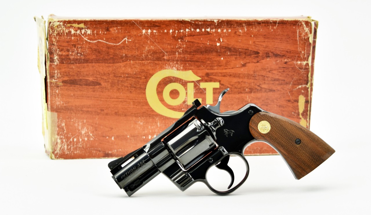 Colt Python .357 Magnum caliber revolver. Rare 2 1.2” snubnose model in excellent condition with original box. A very desirable Colt Snake Gun.
