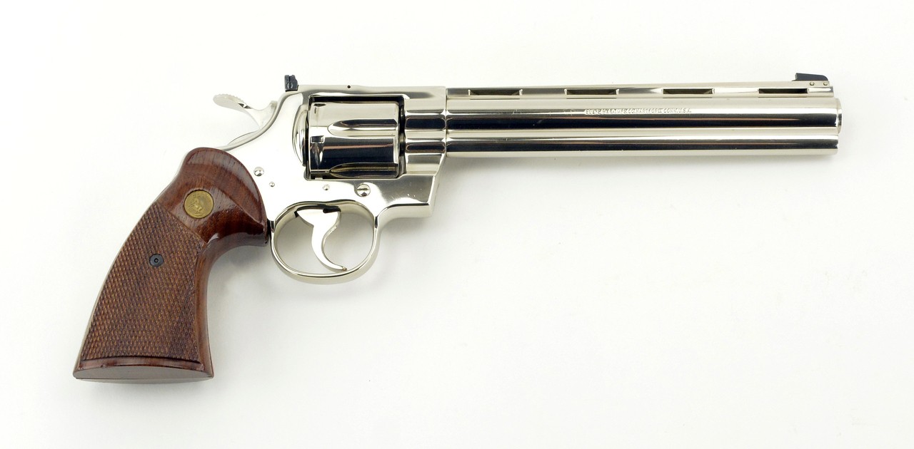 Colt Python .357 Magnum caliber revolver. 8” Nickel model made in 1981. Shows some use, very good condition.