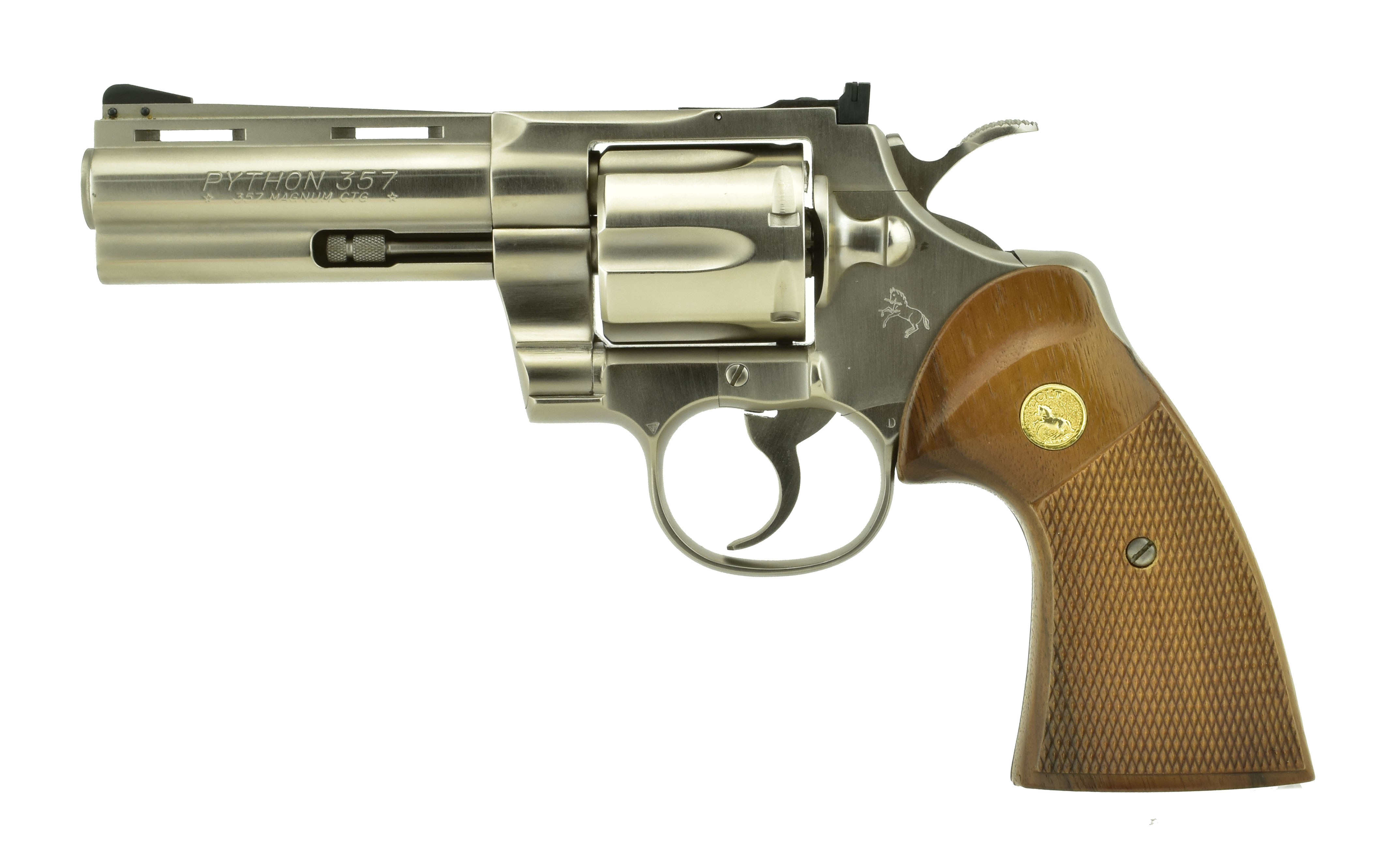 Colt Python .357 Magnum Caliber Revolver. 4” Model with scarce electroless nickel finish. Made in 1978, excellent condition.