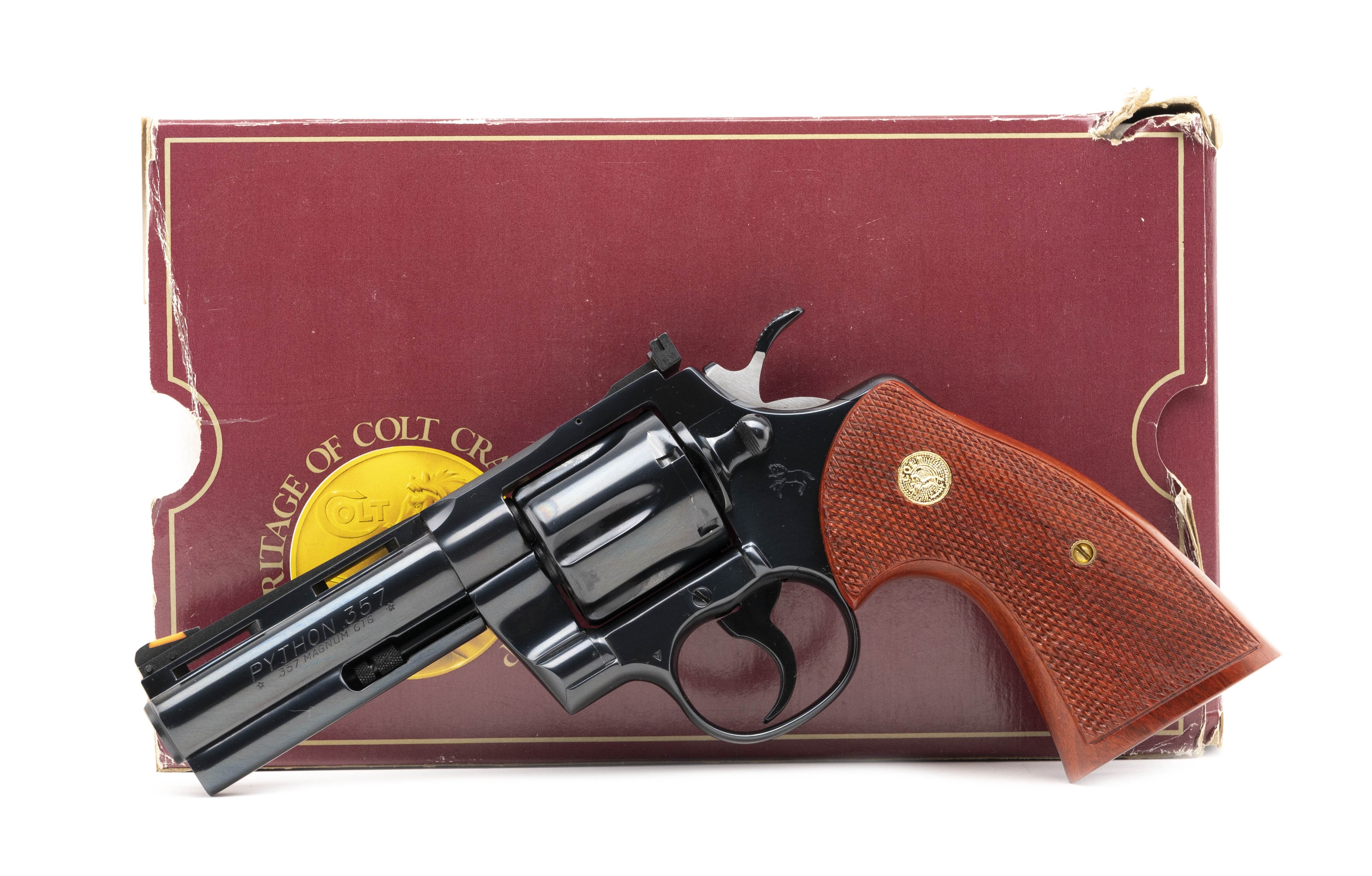 Excellent condition 4" blued Python. Comes with a box, and is missing the sleeve where label resides. Manufactured in 1989.