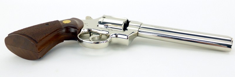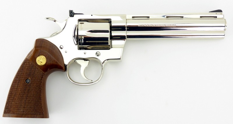 Colt Python .357 Magnum caliber revolver. 6” Nickel model in beautiful condition. Late 70’s production with box but missing the label.