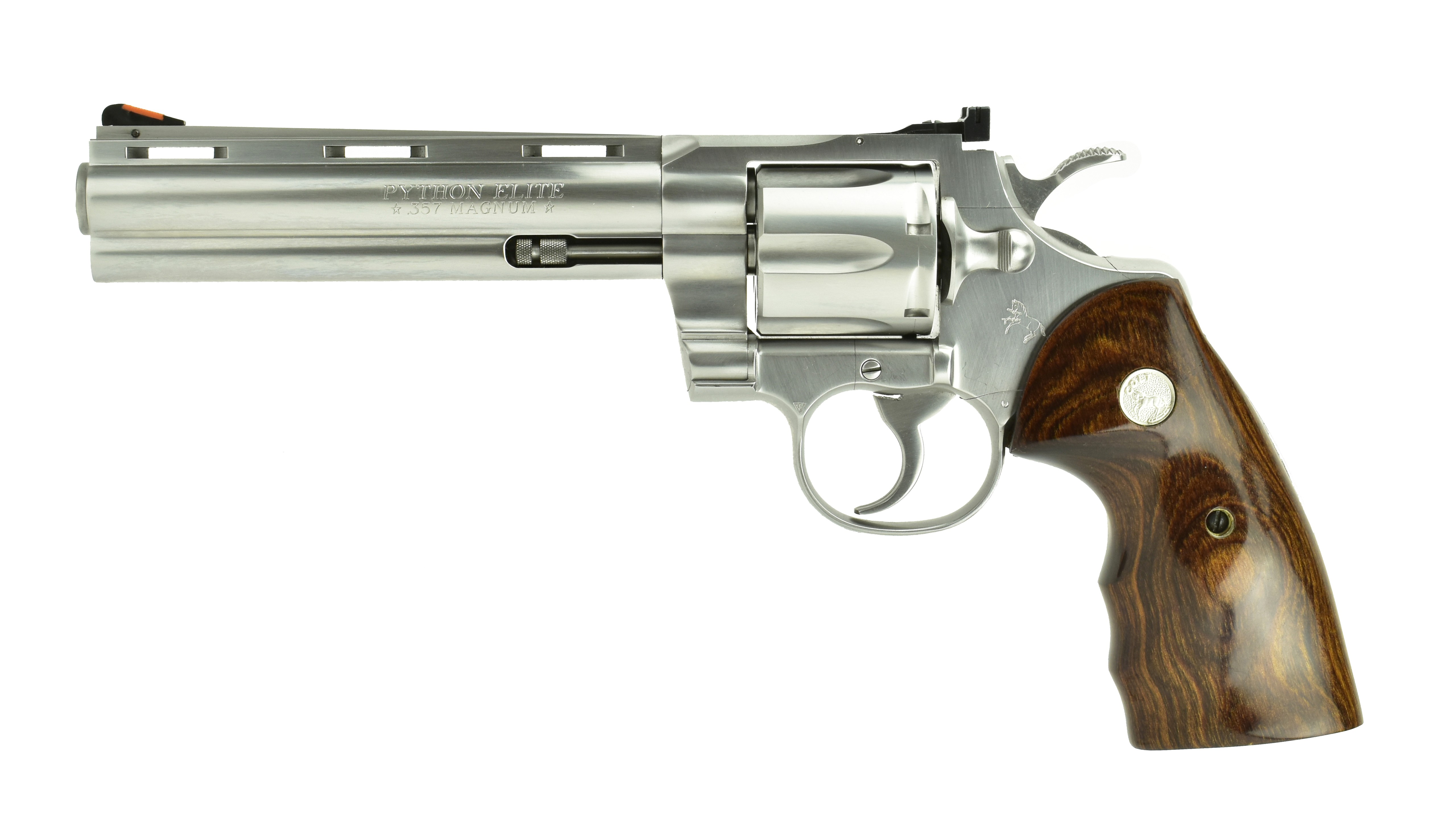 Colt Python Elite .357 Magnum caliber revolver. Stainless Python Elite with 6” barrel and box in excellent condition.