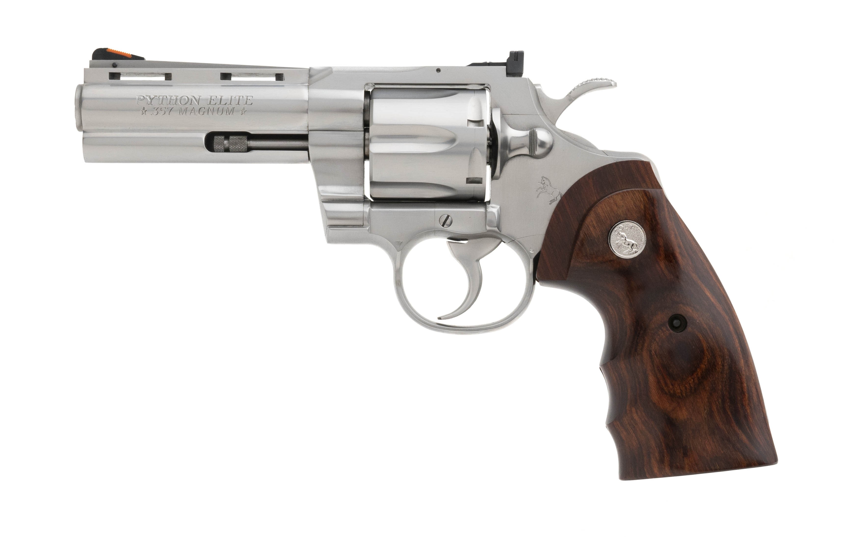 SN: PE02423. Made in 1998. .357 Magnum with a 4" barrel. Scarce Python Elite 4" stainless steel revolver. Excellent condition with box.