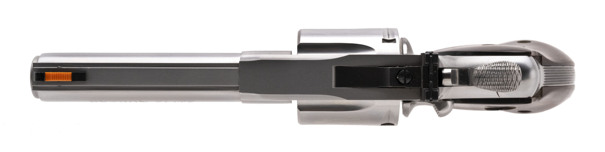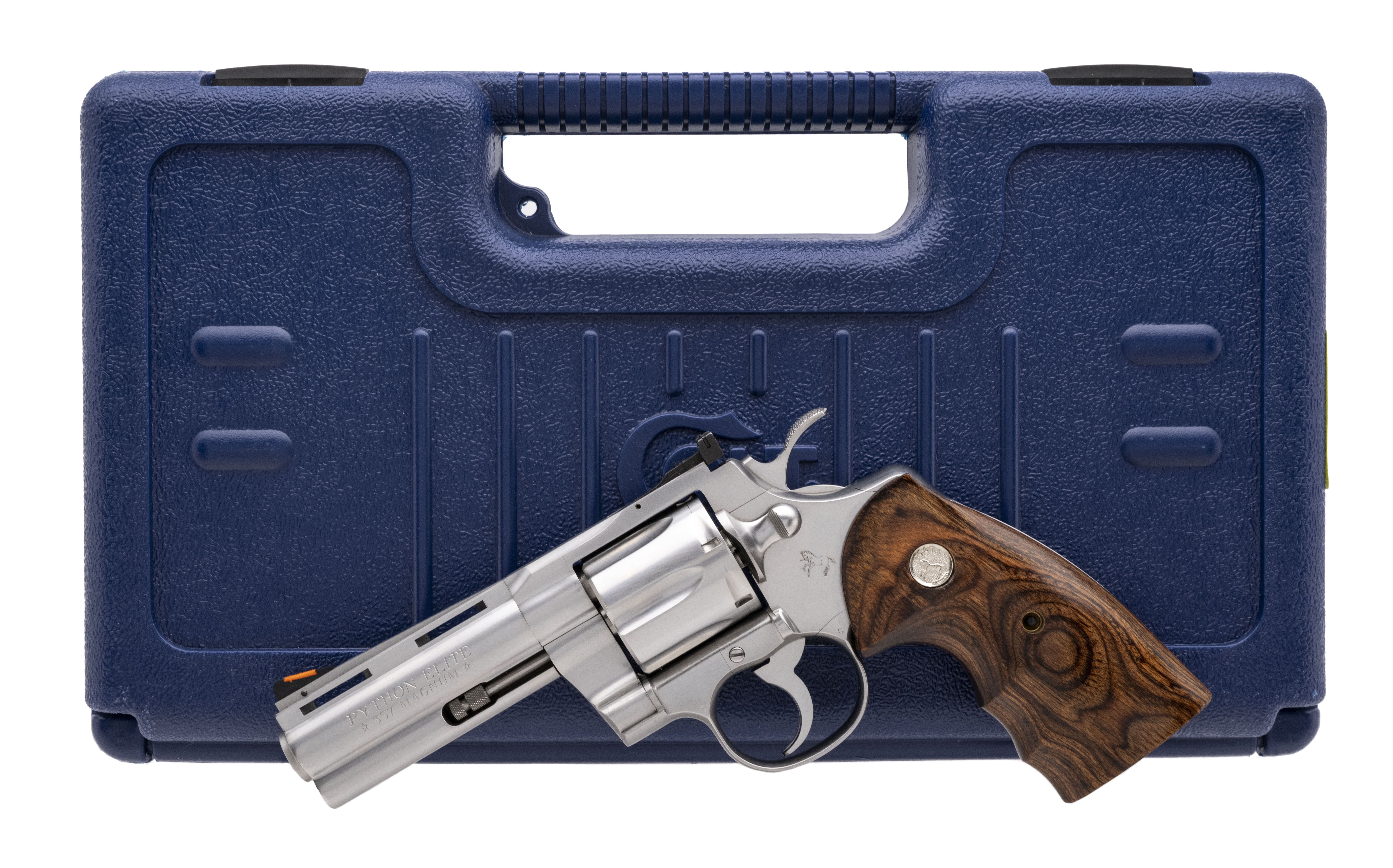 SN: PE00900. Made in 1997, .357 Magnum with a 4" vent rib barrel. Bore is bright with strong rifling. Scarce Custom shop Colt Python Elite. Very desirable gun. Stainless steel shows light marks but is in very good condition. Correct Custom shop grips are in excellent condition. Overall condition is very good. Comes with case.