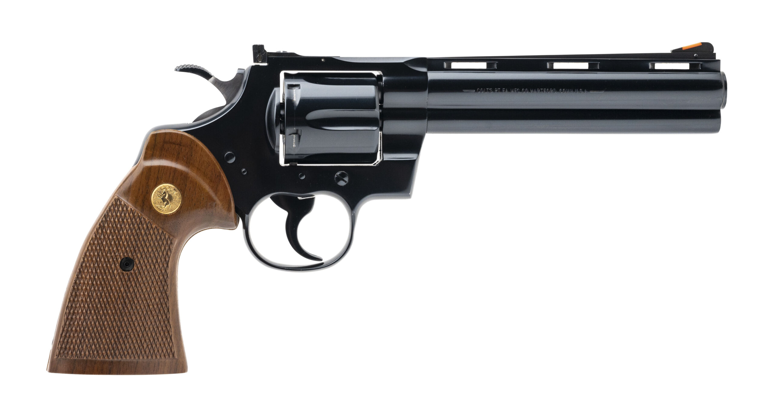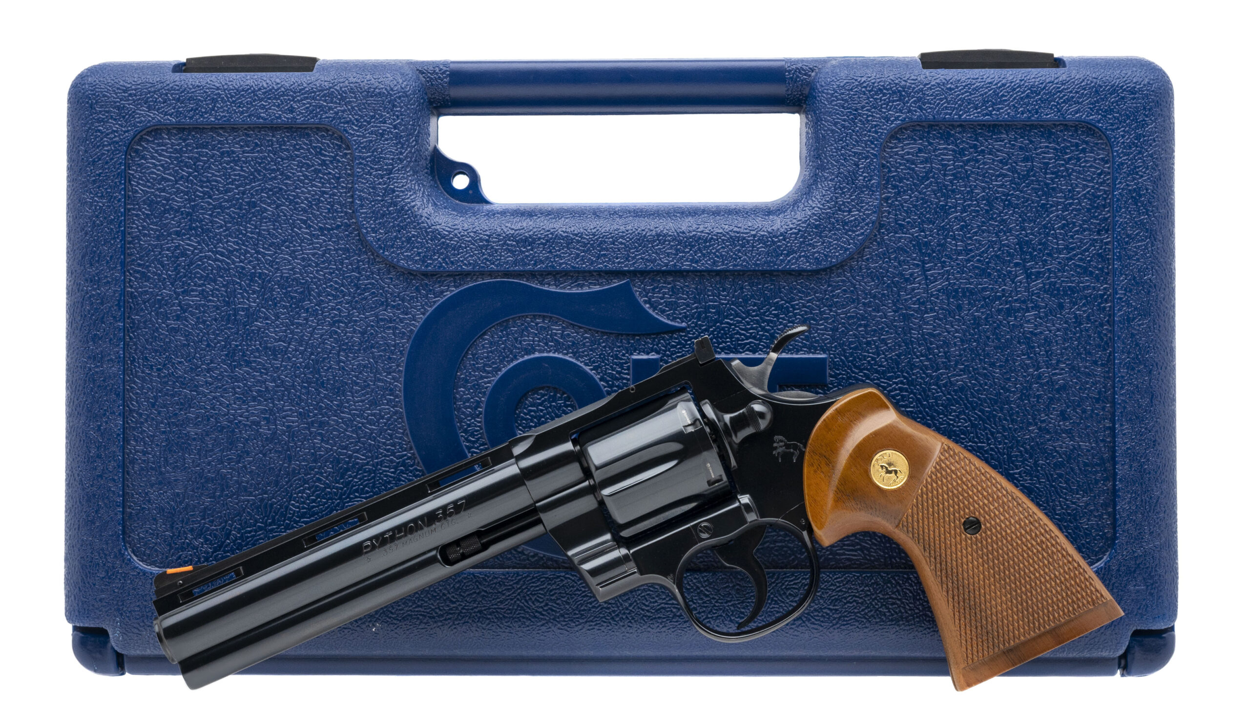 SN: KT5490. Made in 1991. .357 Magnum with a 6" barrel. Bore is shiny with strong rifling. Colt Snake gun with excellent blue finish. Grips have sharp checkering and are in excellent condition. Comes with modern Colt case. Overall excellent condition.