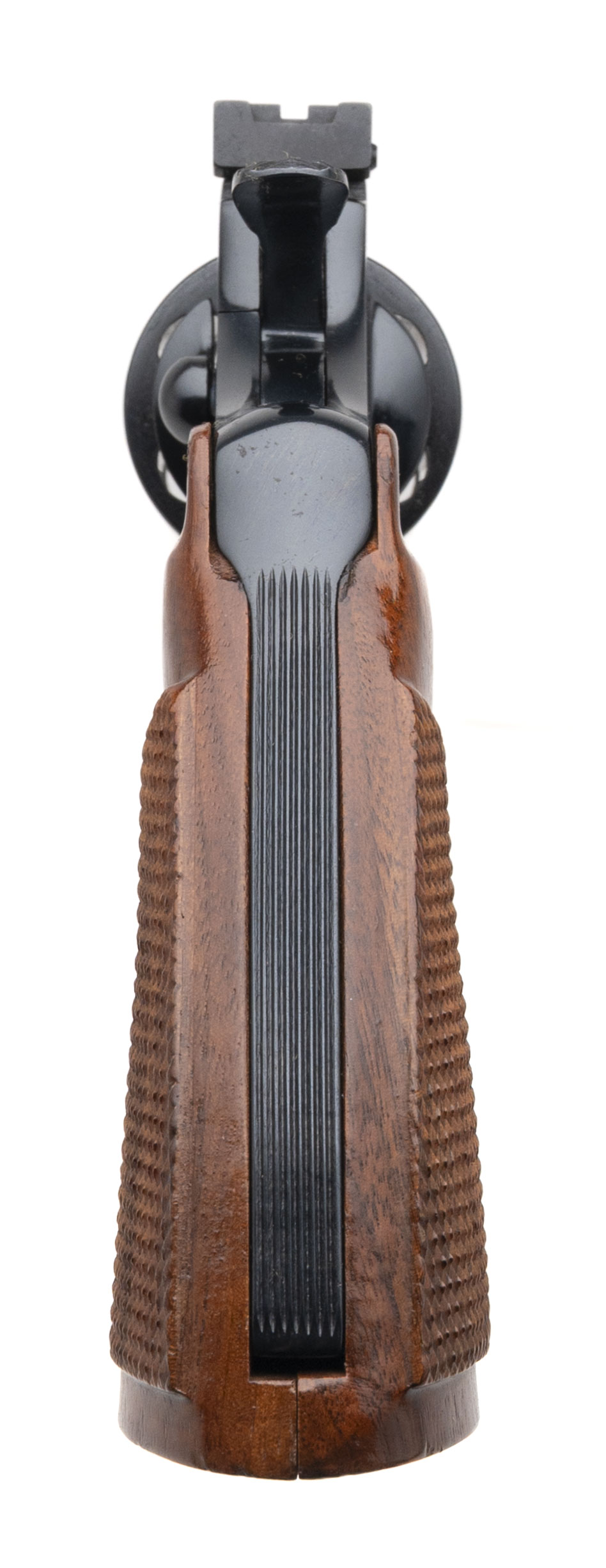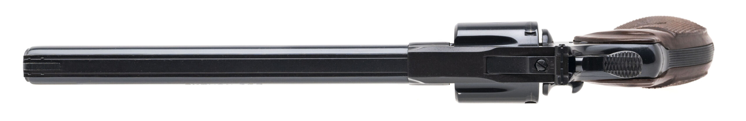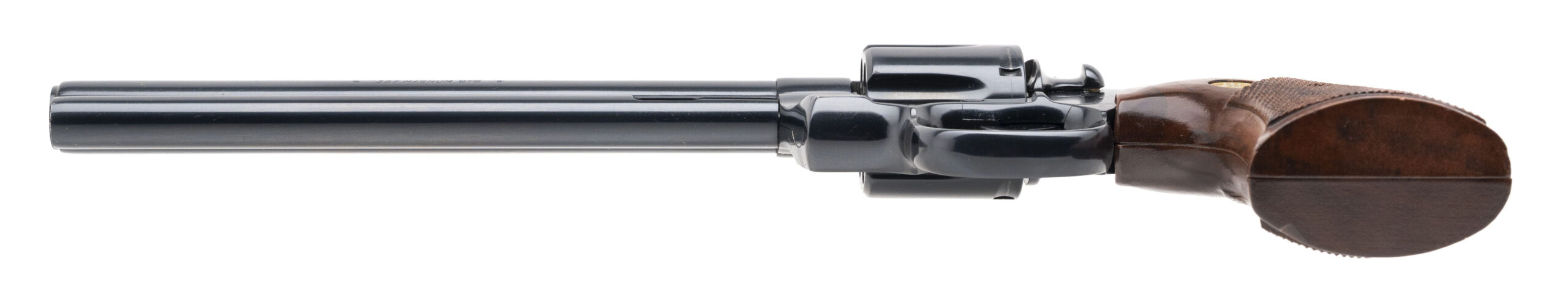 SN: K31299. Made in 1981, .357 Magnum with an 8" barrel. Scarce 8" blue Snake Gun with checkered wood grips. Metal shows light wear near the bore and the walnut grips has a small chip in the left grip. Near excellent condition overall.