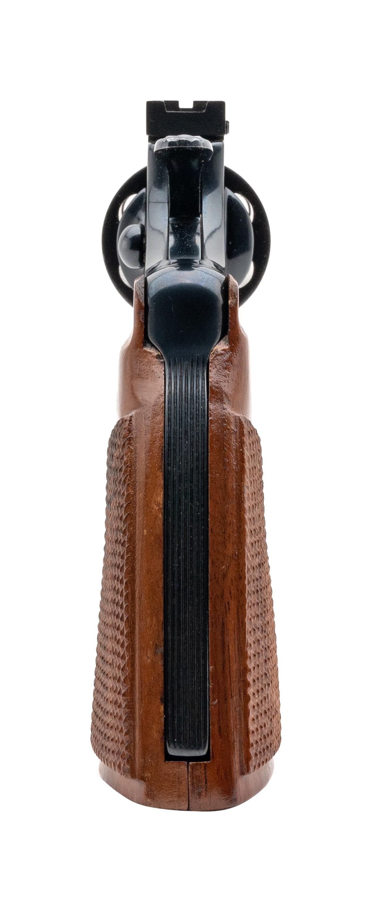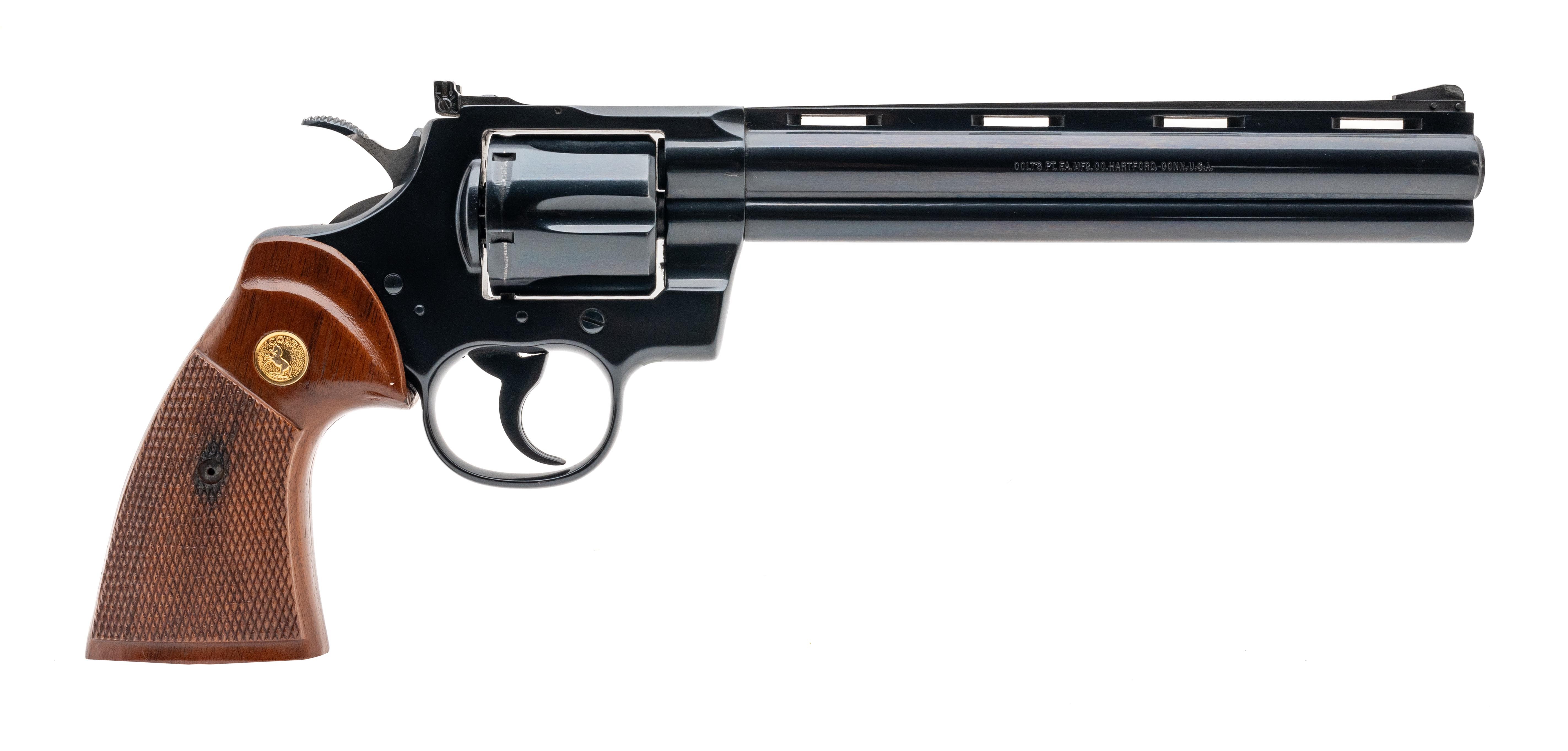SN:VA5286. Made in 1980, .38 Special, with a 8" barrel. Bore is excellent. Double action revolver. Has 98% original finish. Wood grips are in excellent condition. Overall in excellent condition.
