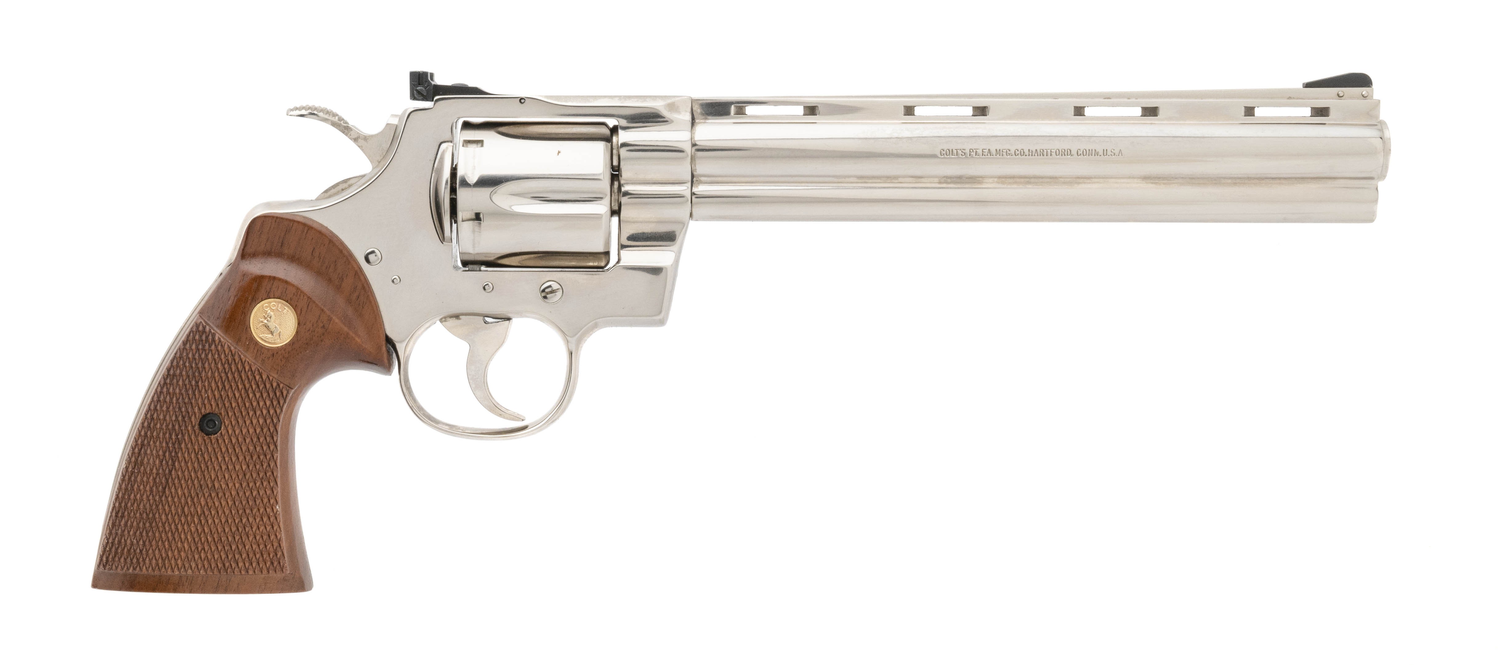 SN: K02808. Made in 1980, .38 Special, 8" barrel. Rare Target model with nickel finish. Only 251 were made with nickel finish. Excellent condition overall. Comes with factory letter confirming all the details.