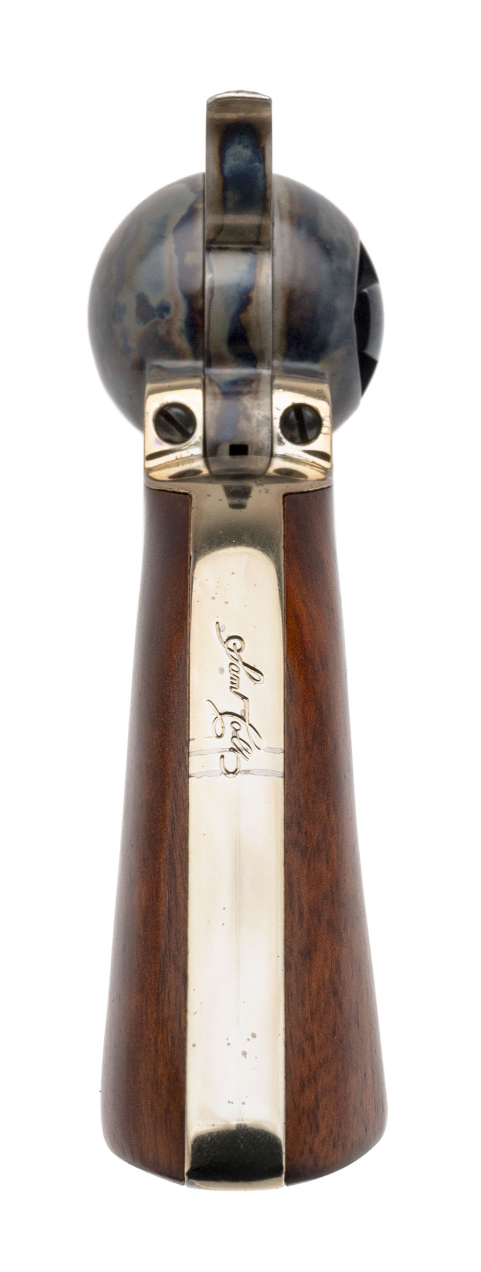 SN: 33837 made circa 1990’s. Modern production of the .36 caliber Colt 1861 Navy with a 7.5” barrel, 6 shot etched cylinder with case hardened frame and loading rod, walnut grips and brass trigger guard and back strap bearing the Sam Colt signature. Overall in very good condition with some very light handling marks on the brass. Comes with original box.Dallas Location
