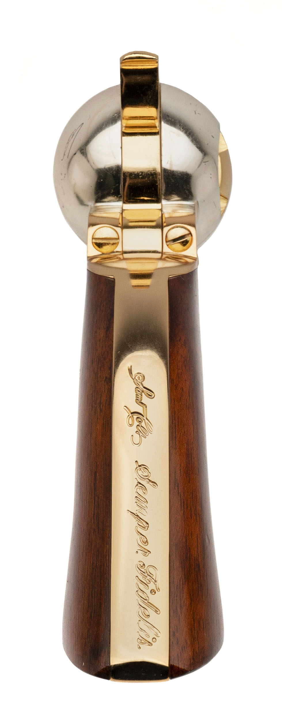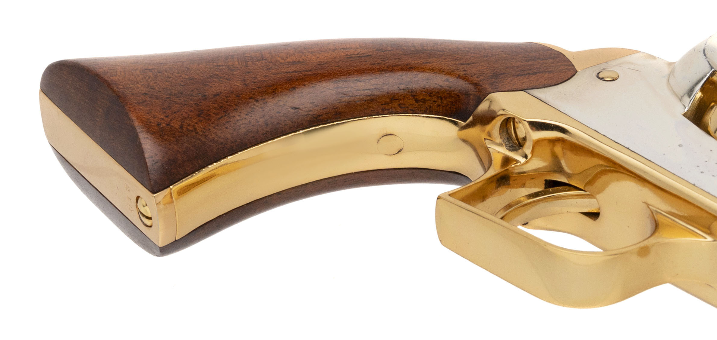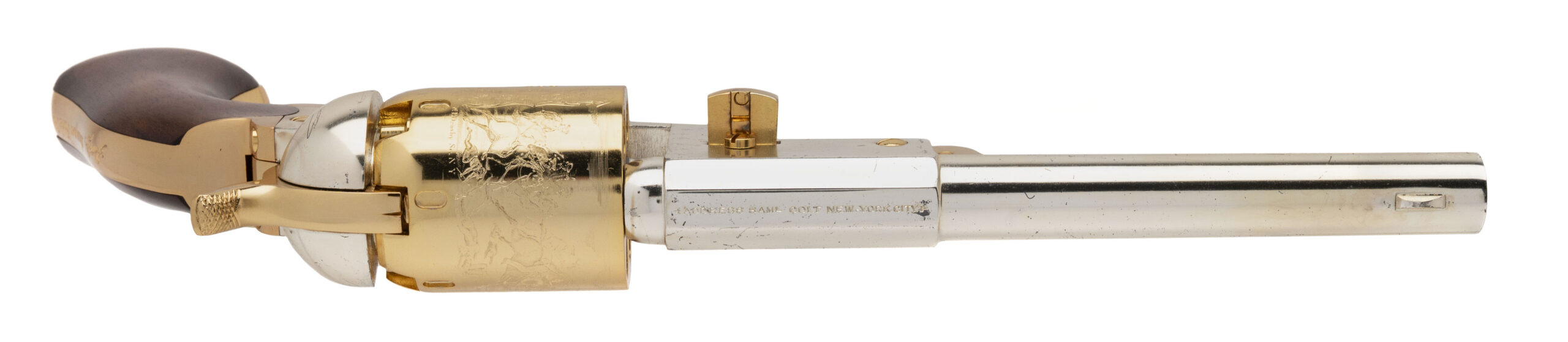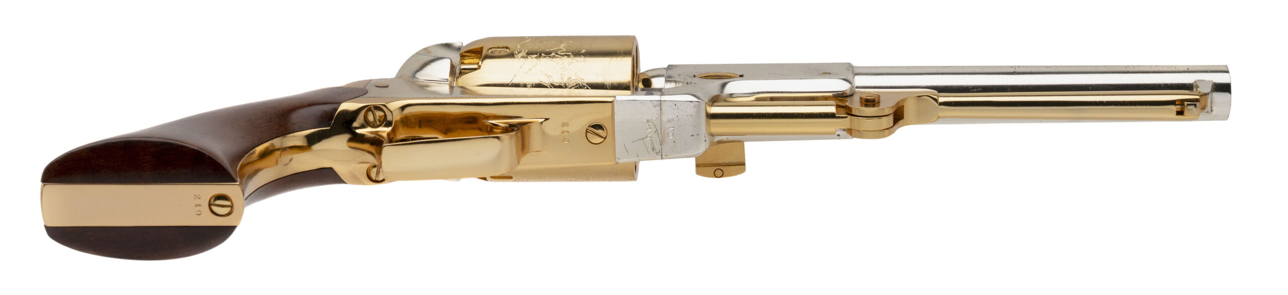 SN: 210 made circa 1990’s. Modern production of the 44 caliber Colt Whitneyville dragoon with a 7.5” barrel. US Marine Corps commemorative edition, nickel plated barrel and frame with all other parts gold plated, etched cylinder and the Sam Colt signature along with “Semper Fidelis” on the back strap. Overall in very good condition with light handling marks. Comes with original box.