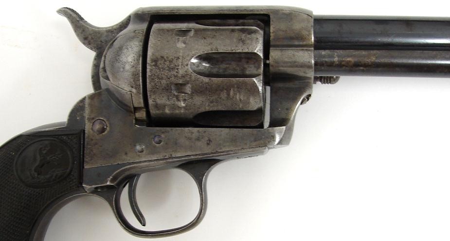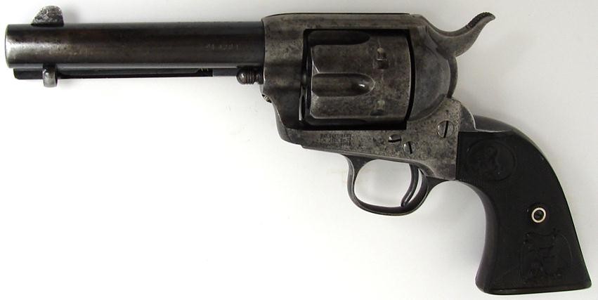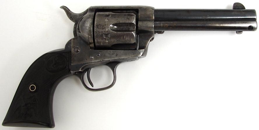 Colt Single Action .41 LC caliber revolver manufactured in 1890, 133xxx serial number range. Very good bore, 15% case colors, 50-60% blue, original eagle grips and crisp action. Very nice condition blue black powder Single Action.