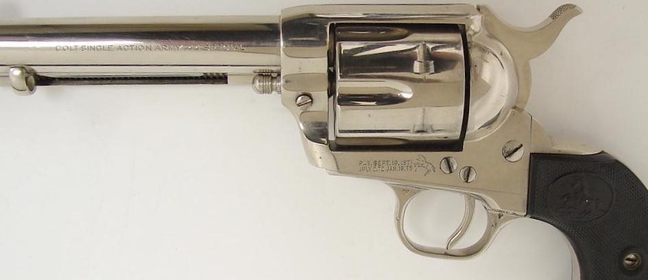 Colt Single Action .44 Special caliber revolver. 2nd generation factory nickel gun in excellent condition with 98% plus finish and 5 1/2 barrel. Has a rotation mark on the cylinder. 30xxx serial number range. Approximately 124 total made in 5 1/2, nickel and .44 Special. Factory letter as you see it. Rare 2nd generation Colt Single Action!