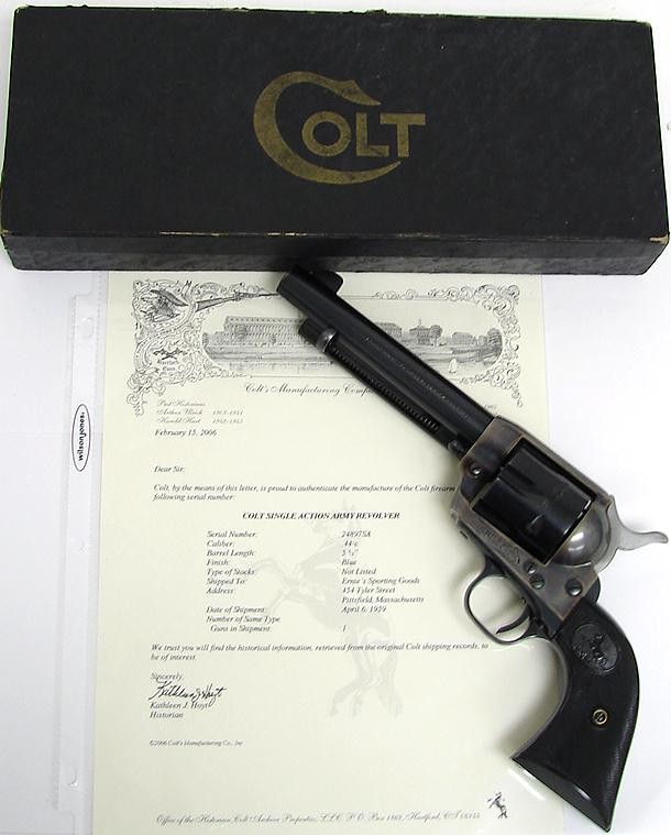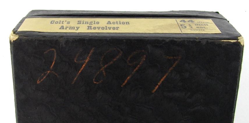Colt Single Action .44 Special caliber revolver with original box numbered to gun. Manufactured in 1959. 97-98% original blue & colors. Scarce outfit in .44 Special with letter.