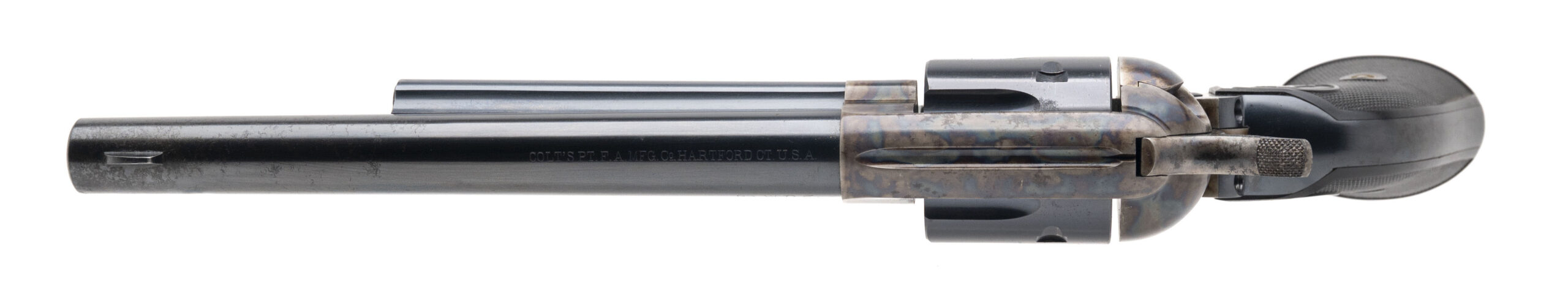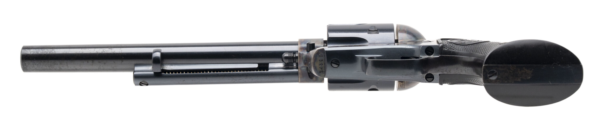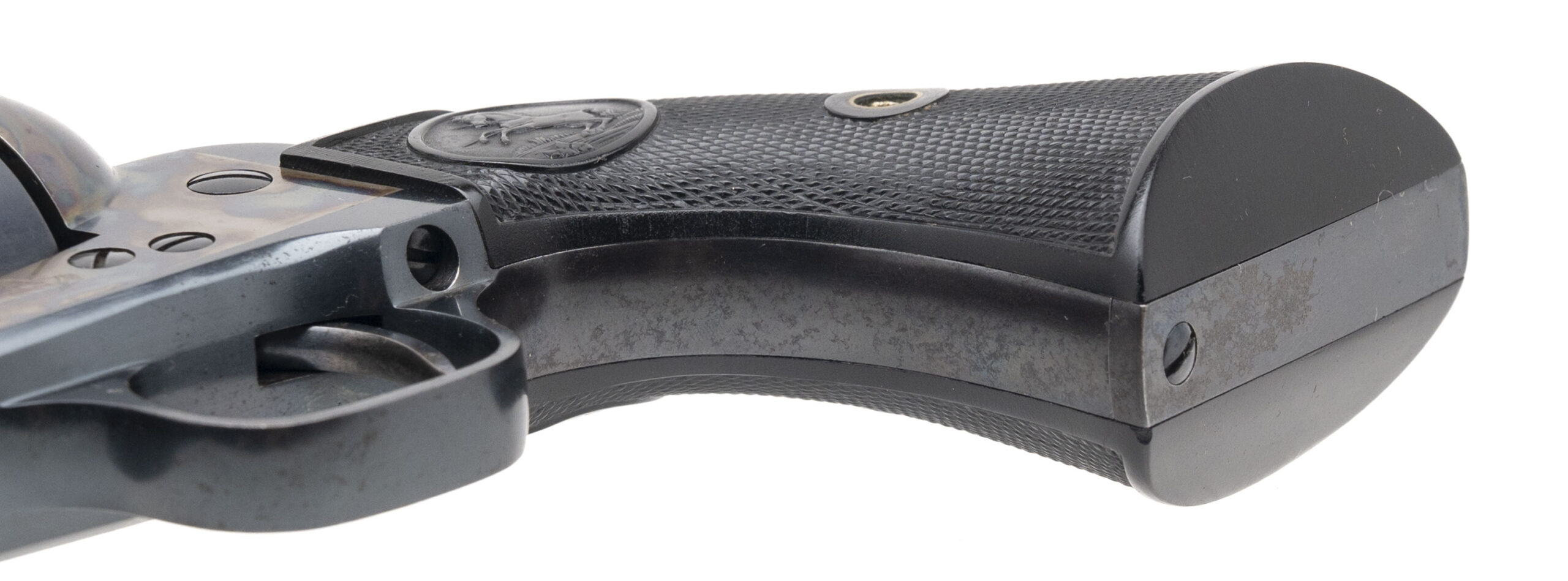 Serial number 345207. Made in 1923. 32-20 caliber with a 7.5” barrel. This gun is in excellent condition with 95% + original blue with just slight wear on the back strap and on the muzzle. The frame has all of the bright case colors. The cylinder does not even have a turn line. This gun comes in an original colt box, but not numbered to this gun. This is an excellent Colt Single Action Army in excellent condition!