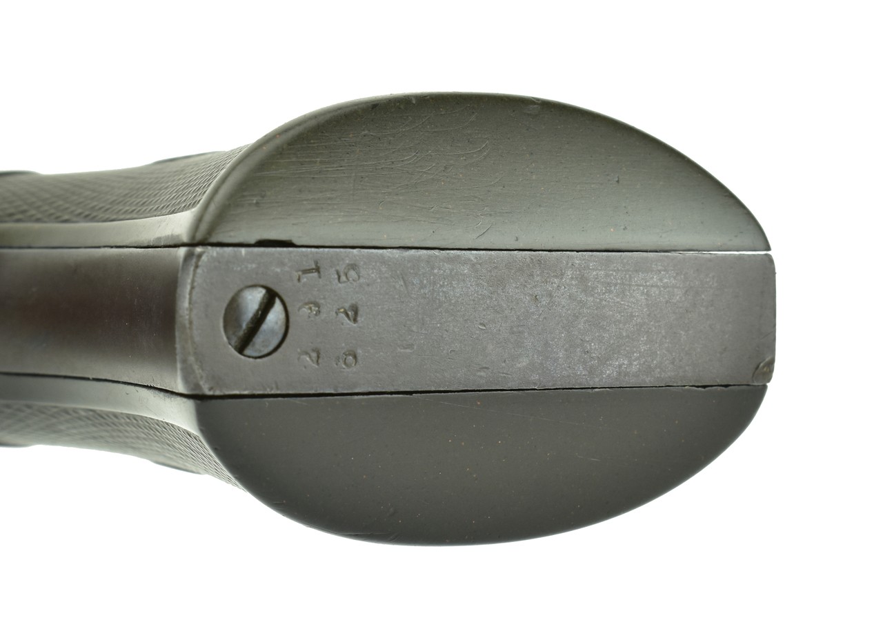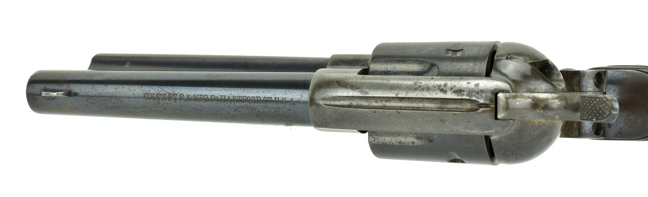 Colt Single Action Army .38-40 Caliber Revolver. Made in 1907. .38-40 Caliber with a 5 ½” barrel. Very nice sharp gun with very good original finish. Barrel has around 50% of the original blue with a plum patina mixed in. Frame still has good case colors in protected areas. Grips are very good. Front and back strap have a smooth brown patina where it has been held. Used, but not abused.
