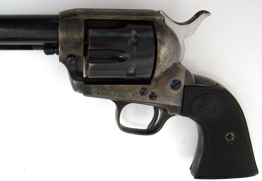 Colt Single Action Army .38 Special caliber revolver. Pre-war 38 Special serial number 357XXX (last two digits are on the cylind (C6419)
