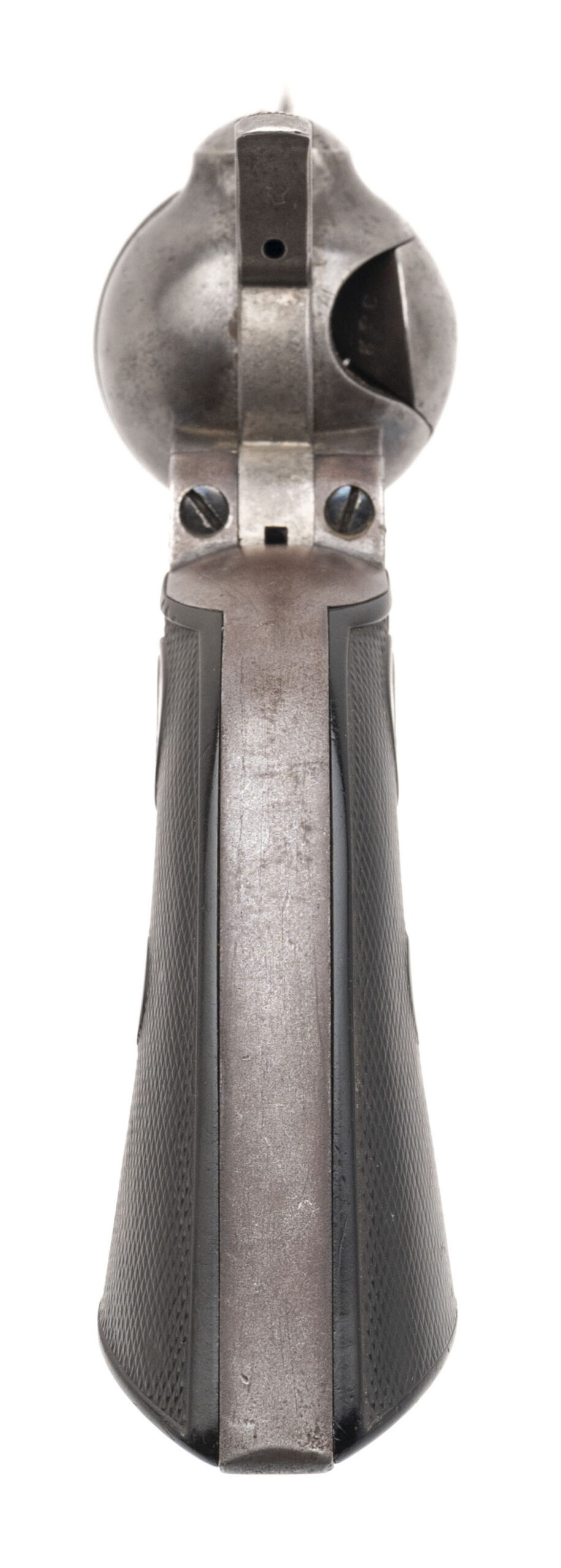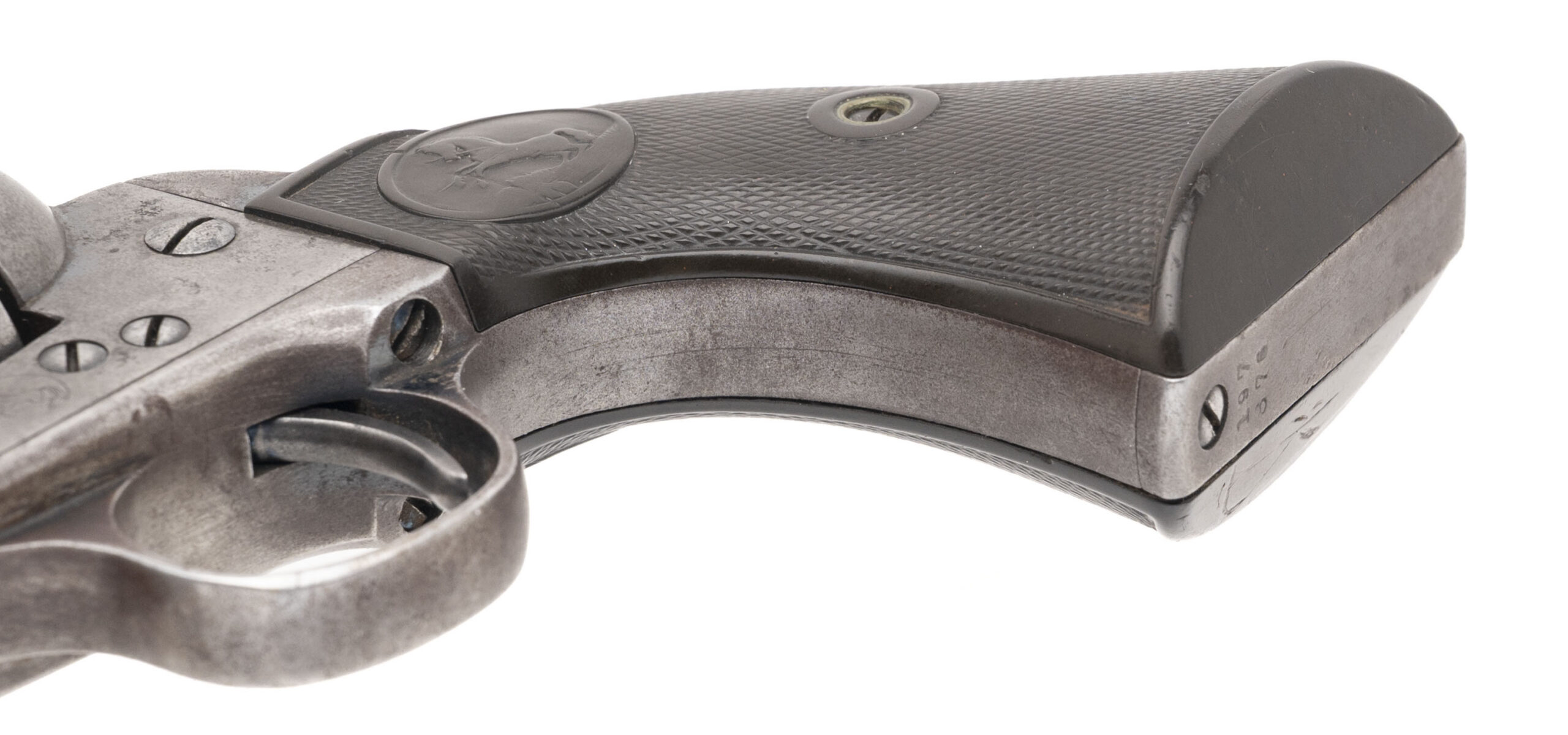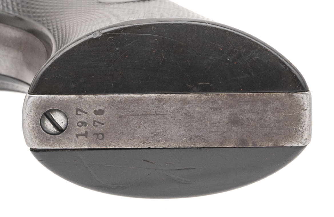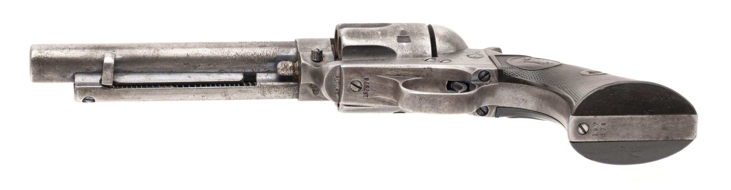 SN:197876. Made in 1900. 38-40 caliber with a 5.5" barrel. This is a reasonably sharp gun with mostly gray patina that has original blue in protected areas. The grips are very good showing normal carry use. The bore is bright and shiny with minor spots of pitting. Action functions as it is supposed to function.