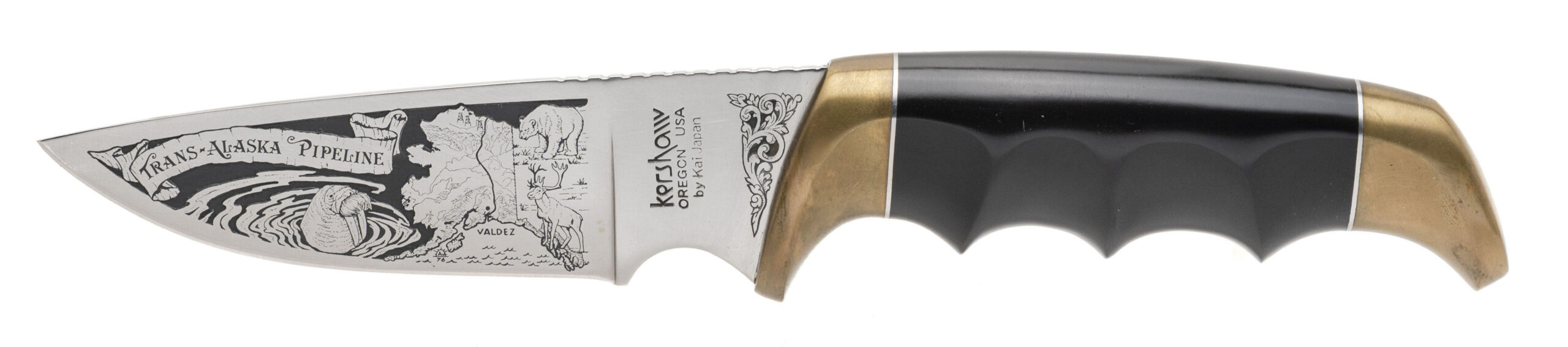 SN: 91325SA. 1978 production, .45 Colt with a 7.5" barrel. Bore is very good. Commemorative 3rd Gen single action revolver with plastic eagle grips. This revolver was made in celebration of the completion of the Trans Alaskan Pipeline and is number 325 of 801 units produced, making this very desirable for any Cowboy action gun collection. Excellent condition overall with presentation box, and Commemorative Kershaw knife.