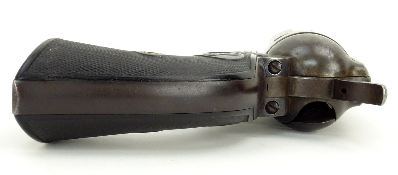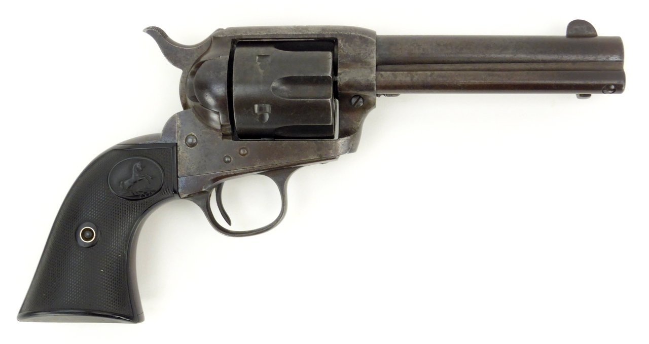 Colt Single Action Army .41 Colt caliber revolver. Manufactured approximately 1910. Bore is excellent and action works excellently, is crisp, and indexes perfectly. Gun has blue in protected areas and is a smooth patina mix otherwise. Grips are near excellent. This is a well-cared for Single Action with no abuse.