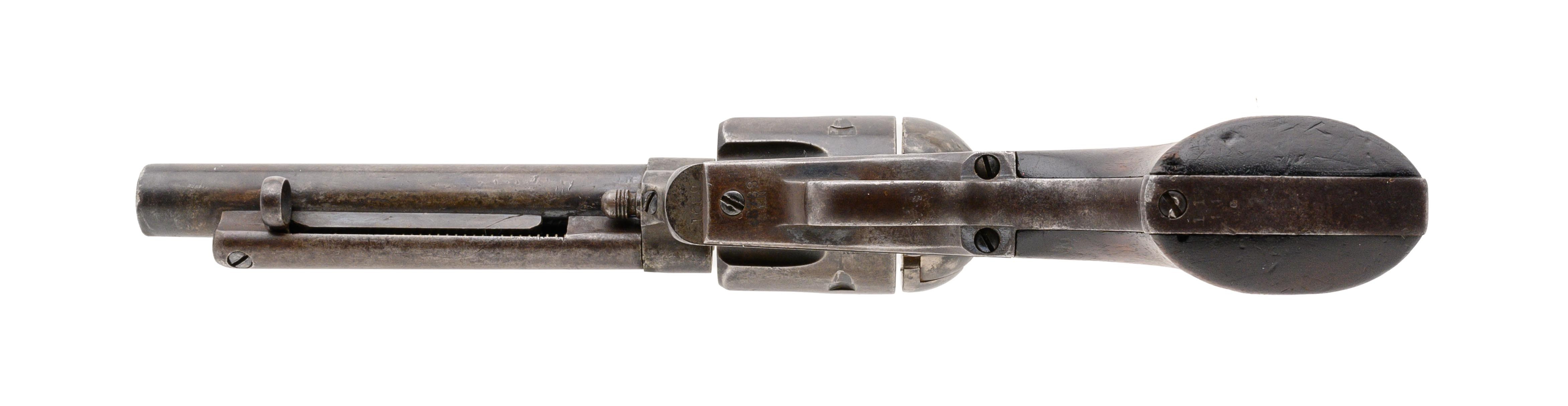 Serial number 1689. Made in 1874. 45 LC caliber with a 5 ½” barrel. This is a nice sharp gun with a dark gray patina. The numbers are correctly mismatched as the Artillery model Colts were made up from Cavalry models that had been disassembled, refurbished and re-assembled making no effort of trying to match the parts by serial number. Trace amounts of original blue remain in the protected areas. Original case colors remain in protected areas. The grips are very good and dated 1903.