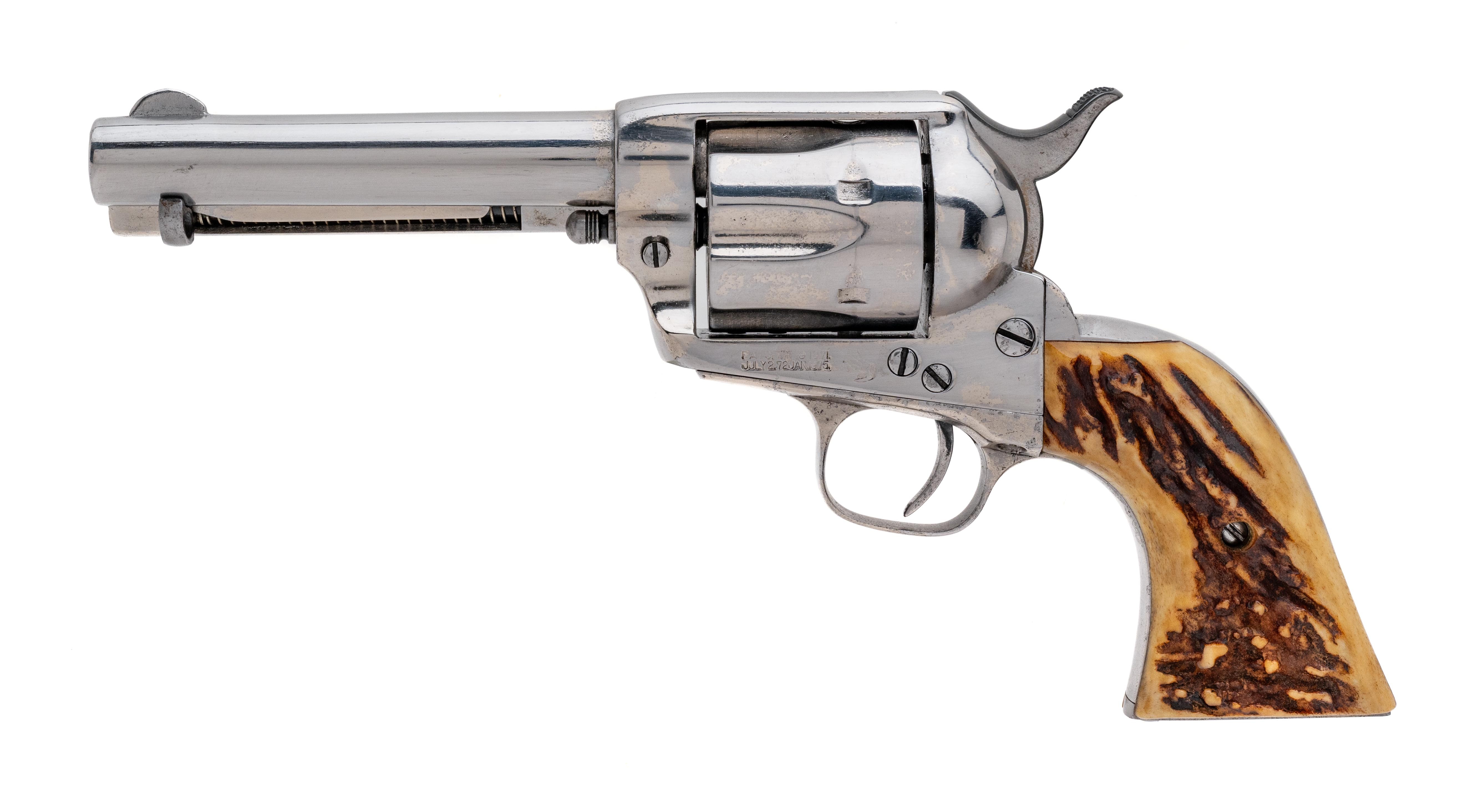 SN:341900. Made 1921. with a 4.75" barrel. Bore is in excellent condition. 1st Generation Single action army Revolver with cleaned metal, blank barrel and stag grips. Overall condition is very good.
