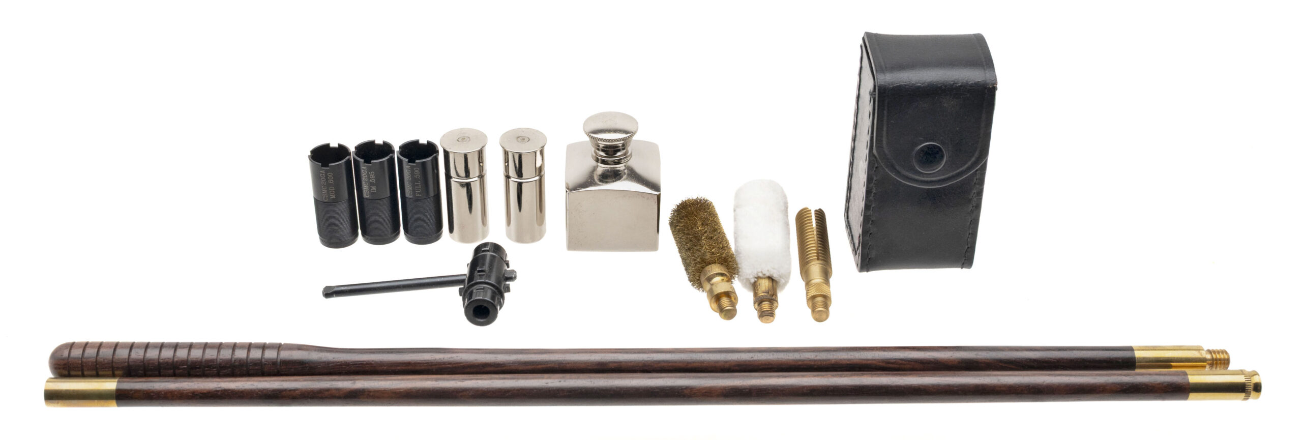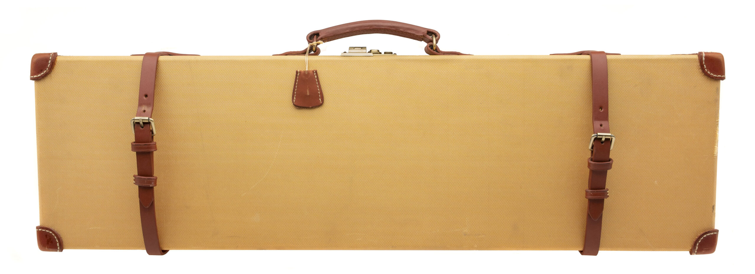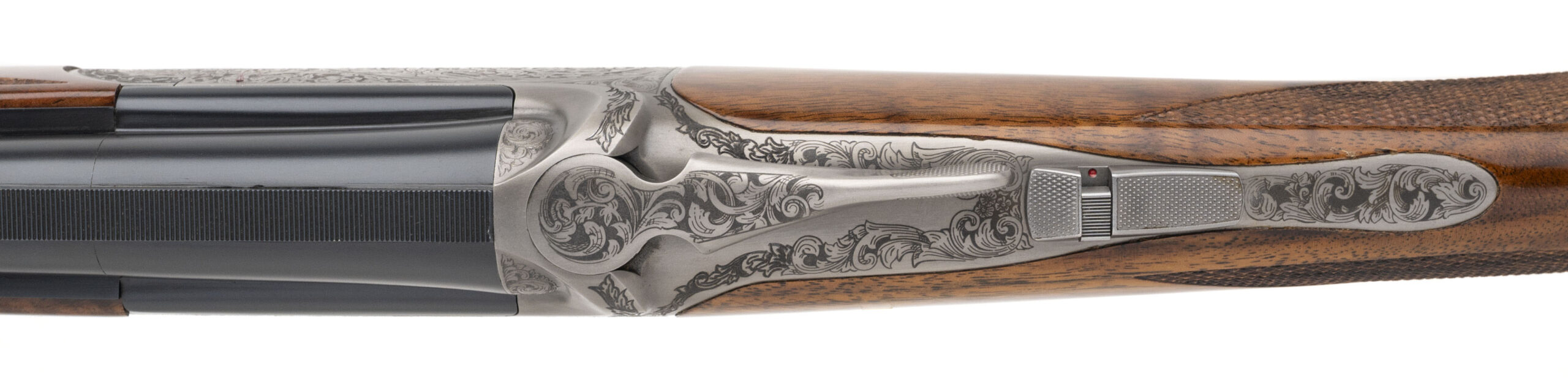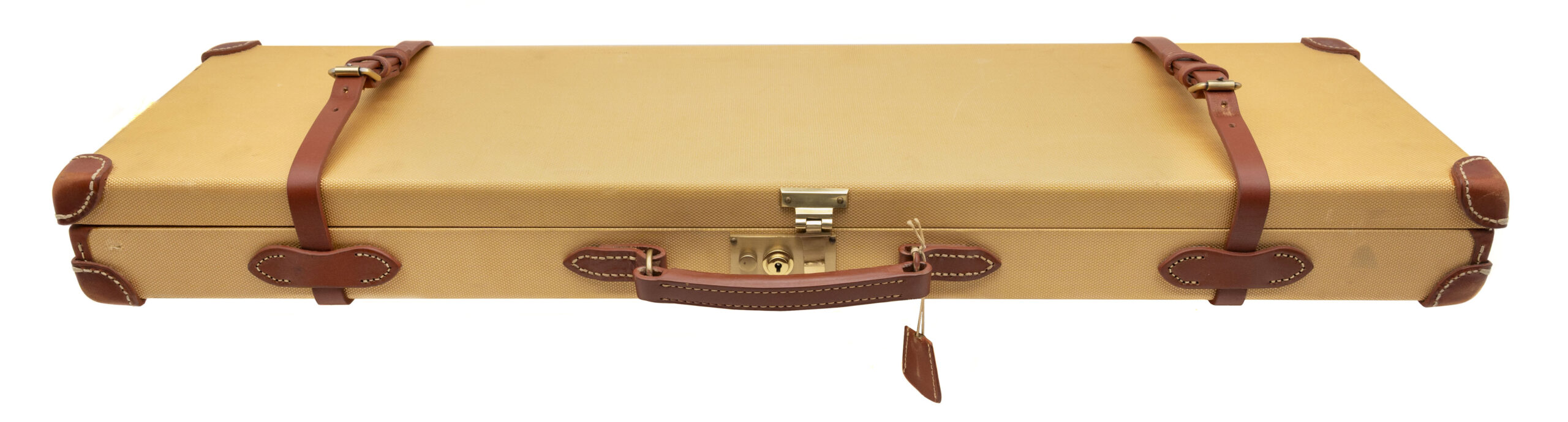 SN: I-00046. Round action over under 20 gauge shotgun with 28” vent rib barrels with white front and mid bead, 3” chambers and screw in chokes. Engraved coin finish box lock with a selective single trigger, auto ejectors and a manual safety. Upgraded XXX wood and leather covered recoil pad with a blank silver oval, 14 ½” LOP and drop of 1 3/8” to 2”. Comes with original luggage case and accessories. DALLAS LOCATION
