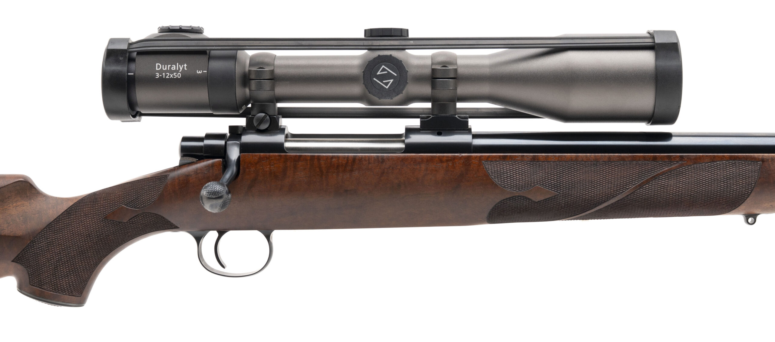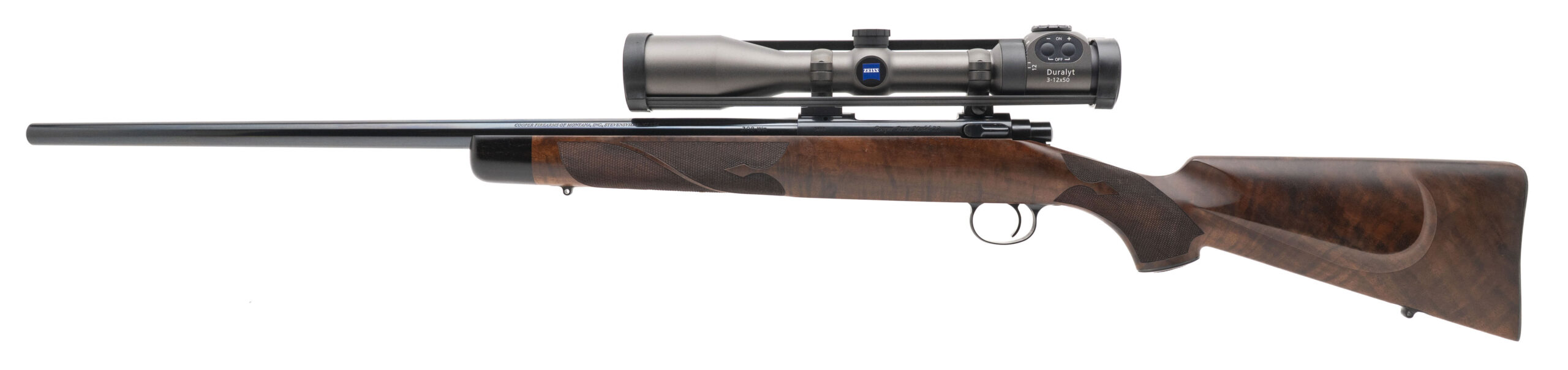 SN: 5699. Modern production, .308 with a 24" barrel. Bore is excellent. Premium grade bolt-action rifle with Carl Zeiss Duralyt 3-12X50 scope, blued finish, and checkered wood stock. Includes box. Overall condition is excellent.