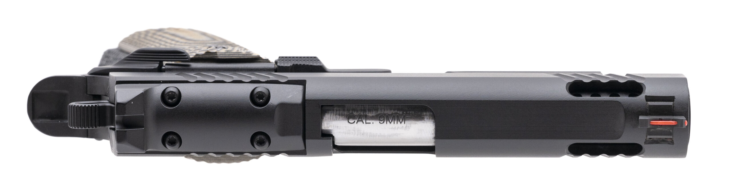 SN:E0141. Modern production. 9mm with a 4.25" ported barrel. Bore is in excellent condition. Full size optic ready pistol. Finish and G10 grips are in excellent condition. Pistol has optic ready slide. Overall condition is excellent. Comes with case and 1 extra magazine.
