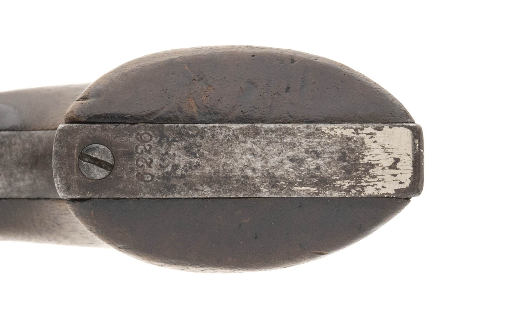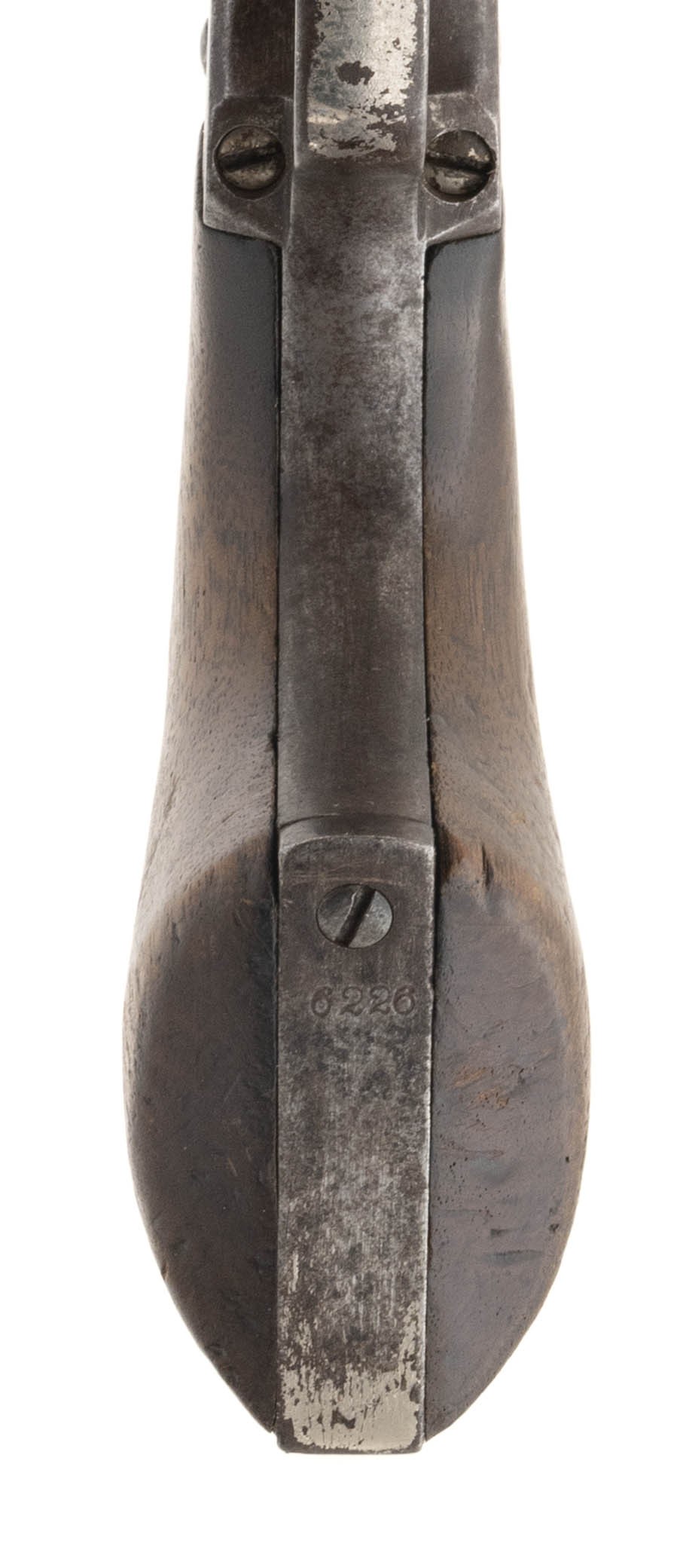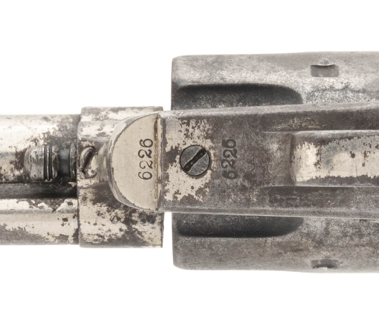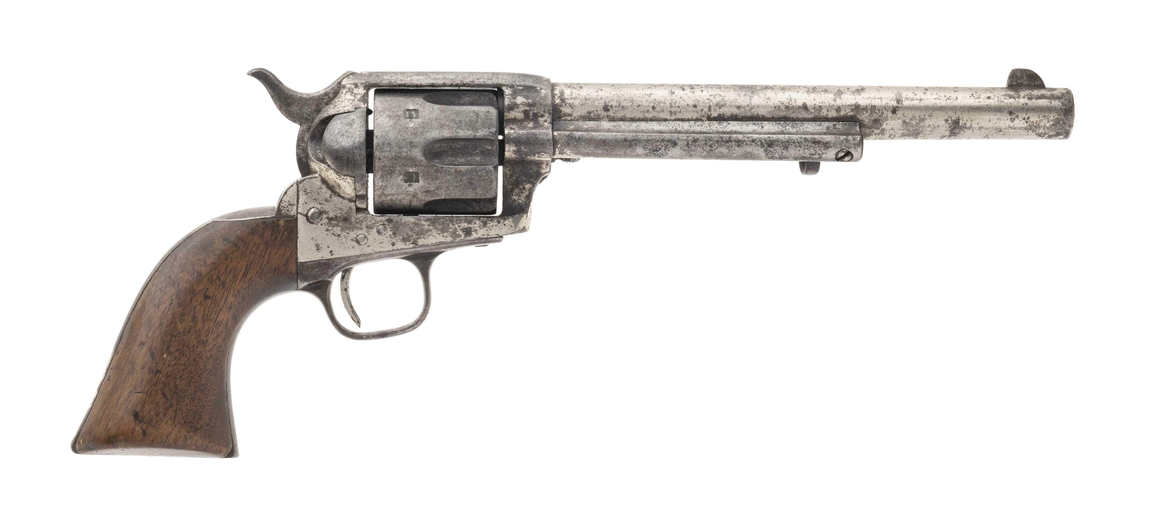 Serial number 6226. 45 LC caliber with a 7 ½” barrel. This gun is a Cavalry model purchased by the military and inspected by O. W. Ainsworth. This gun has a period nickel finish. Noted expert and author John Kopec has speculations of why some cavalry models were nickel plated, but does not know for sure the reason. Approximately 70% of the nickel finish remains. Grips show normal wear. This gun falls in the 6th lot issued to the cavalry where Lot 5 & 6 are the guns issued to the 7th cavalry and could have been used at the Battle of the Little Big Horn. It also falls in a range where it could have been issued to the 2nd Cavalry. This gun comes with a letter from noted expert John Kopec authenticating this gun as all original. This gun was awarded Mr. Kopec’s coveted Golden seal that is reserved for only the finest cavalry models that are completely original and completely unaltered. Very fine Custer era Colt!