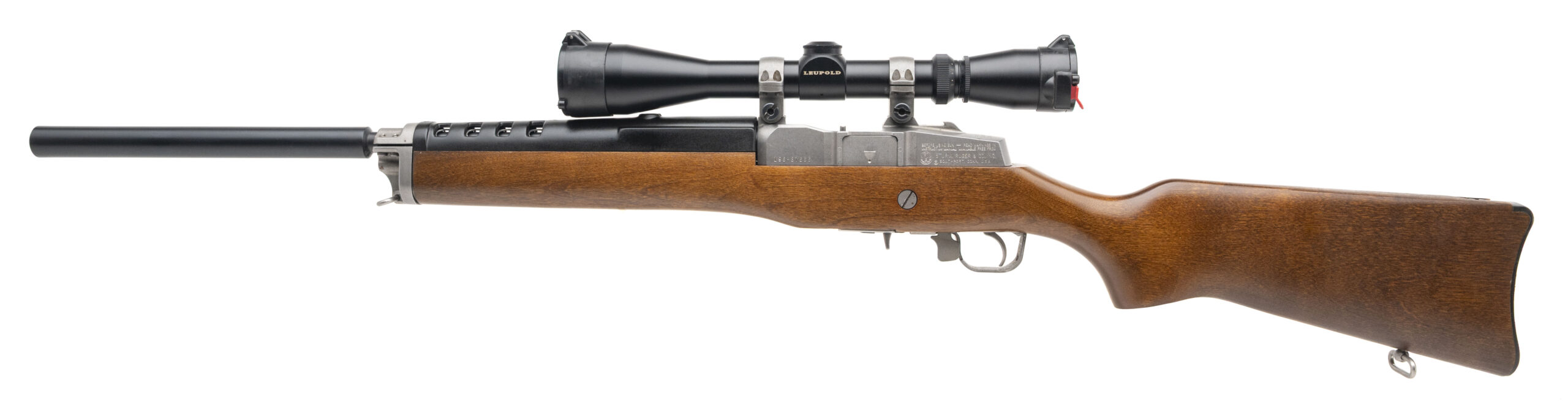 SN: 196-37666 made in 2001. Semi-auto rifle with a custom 20" heavy barrel chambered in 223 with a Leupold VX-IIc 3-9 scope and 5 round detachable magazine. Walnut stock with curved butt plate and polymer heat shield overall in very good condition with an excellent bore.