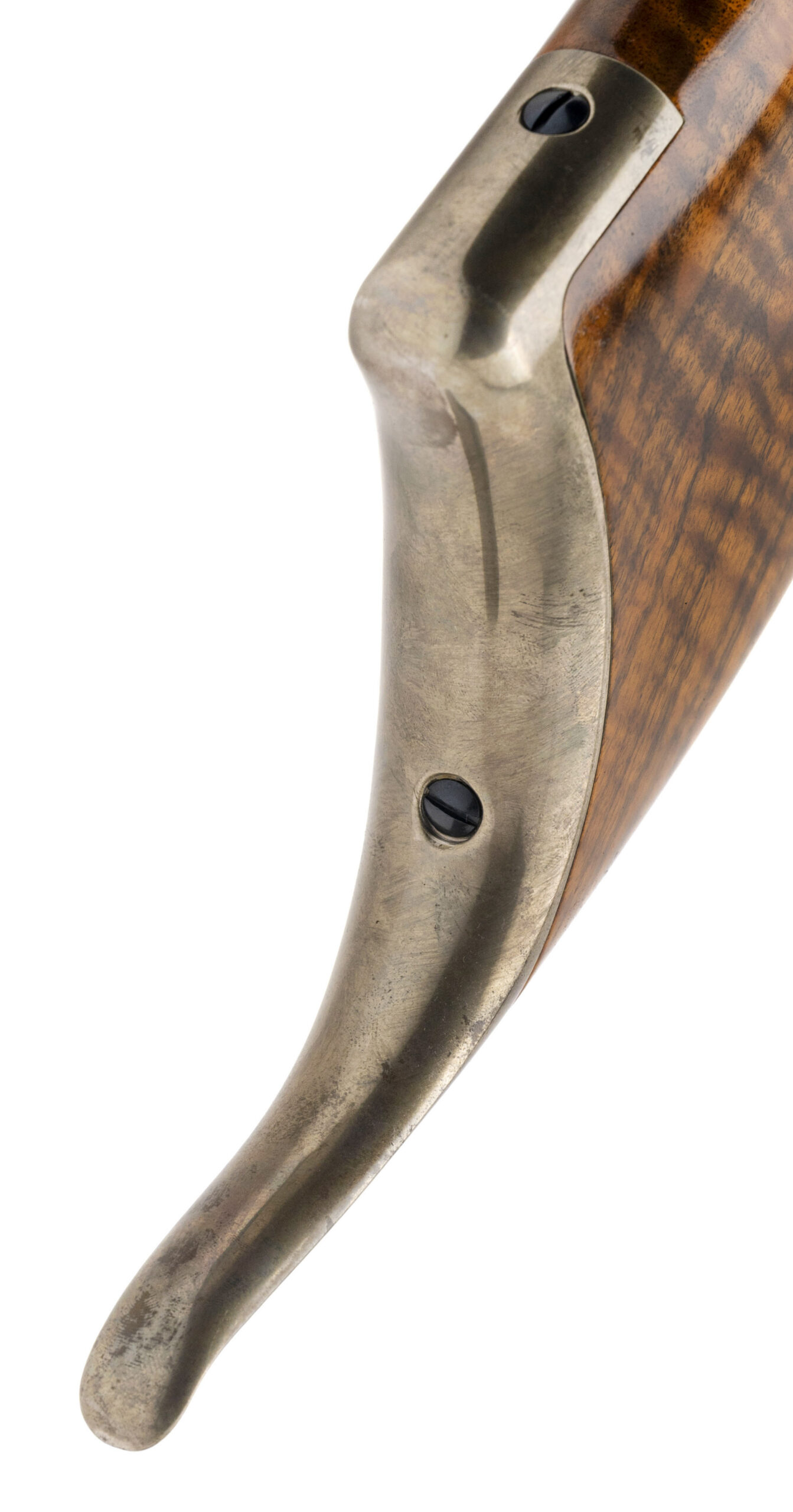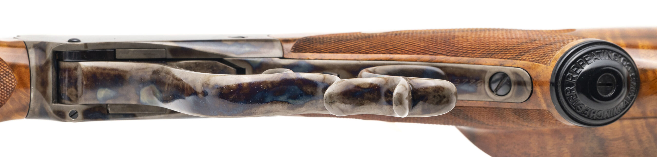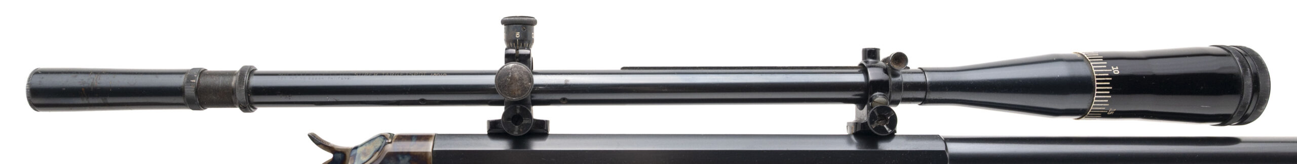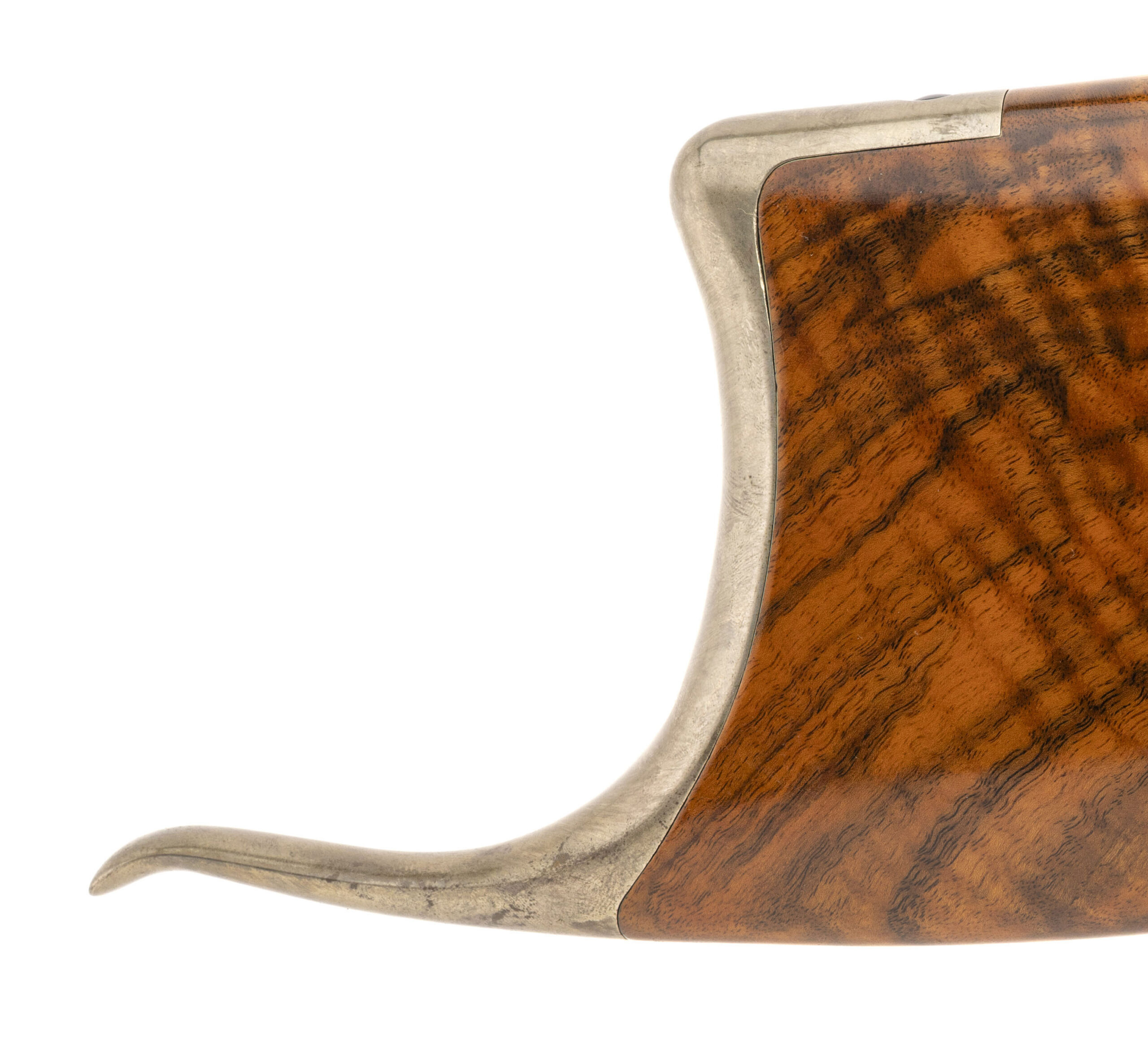 Serial number 62770. Made in 1893. 22 LR caliber with a 27” barrel bull, half round half octagon barrel. This gun is in like new condition as customized. The barrel has 100% of the blue. The frame has very well done case colors with a small area on the right hand side that appears to have laid up against something. The stock is finely figured and checkered in a Fleur D’Lis style. This gun has a half Schutzen style butt plate. Action works perfect and bore is excellent.