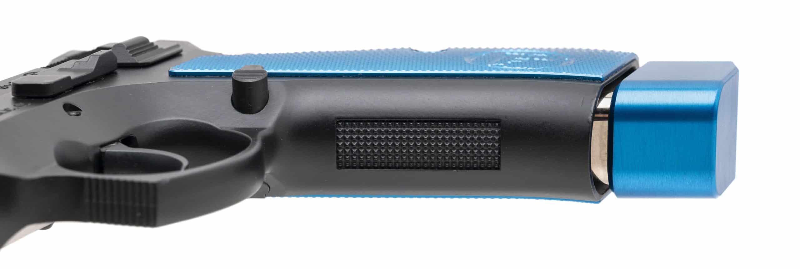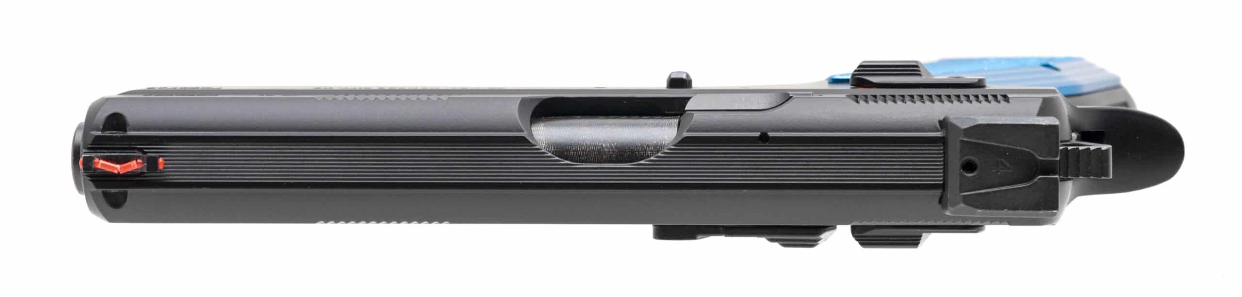 SN: F252763, Modern production, 9mm with a 4.5” barrel. Bore is excellent. Full size steel frame competition pistol. Finish and Aluminum grips are in excellent condition. Overall excellent condition. Pistol comes with case and extra magazine.