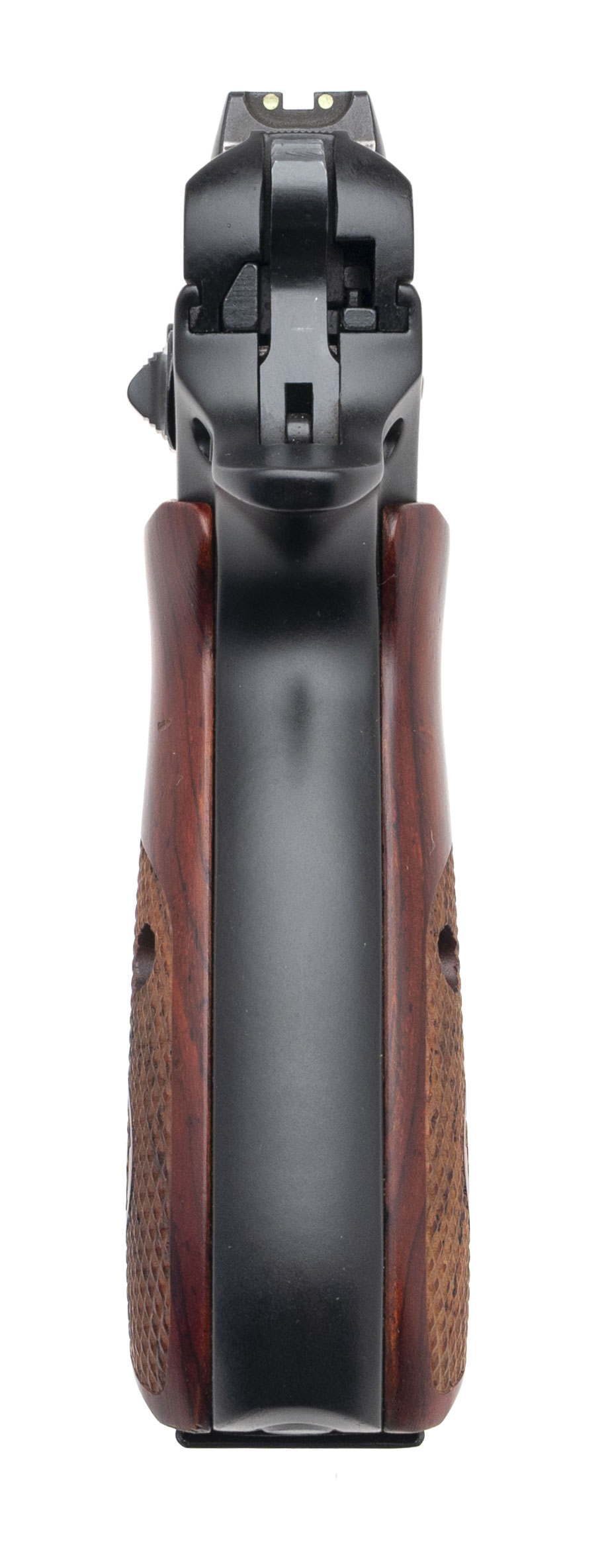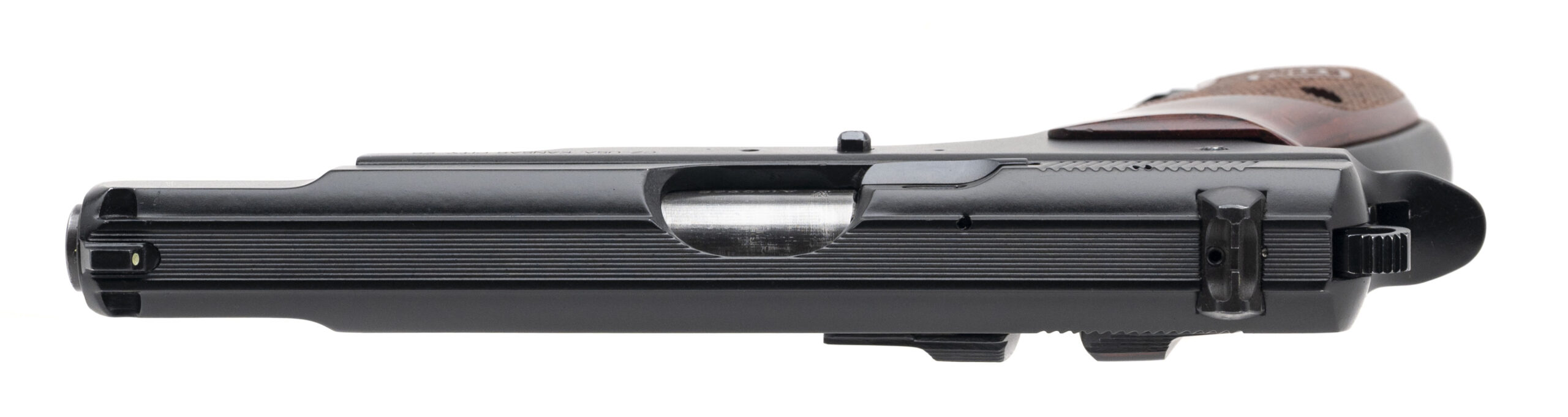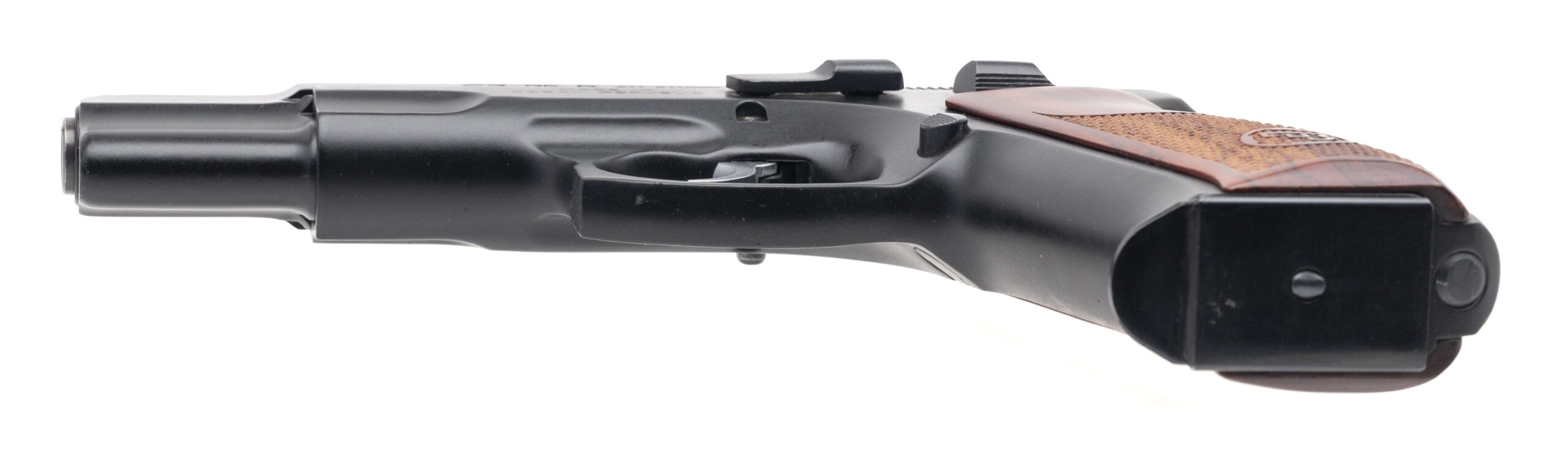 SN: A160965. Modern production, 9mm with a 4.6" barrel. Bore is bright with strong rifling. Czech made double action pistol with checkered wood grips. Very good condition overall with case and original rubber grips.