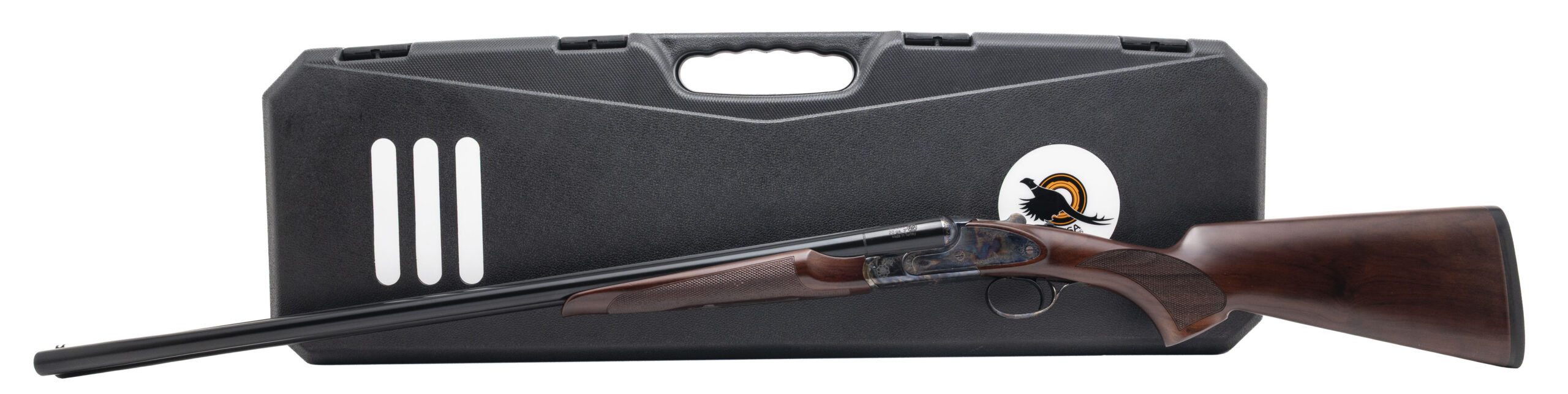 SN: 25C2019. Modern production, 20 gauge with 28" barrels w/removable chokes chambered for 3" shells. Bores are excellent. SxS field shotgun with a white bead front sight, black hard chrome finish, color-case hardened receiver, and checkered Turkish walnut wood stock with a 14.5" LOP. Receiver shows light marks. Overall condition is near excellent. Includes additional chokes, and original case.