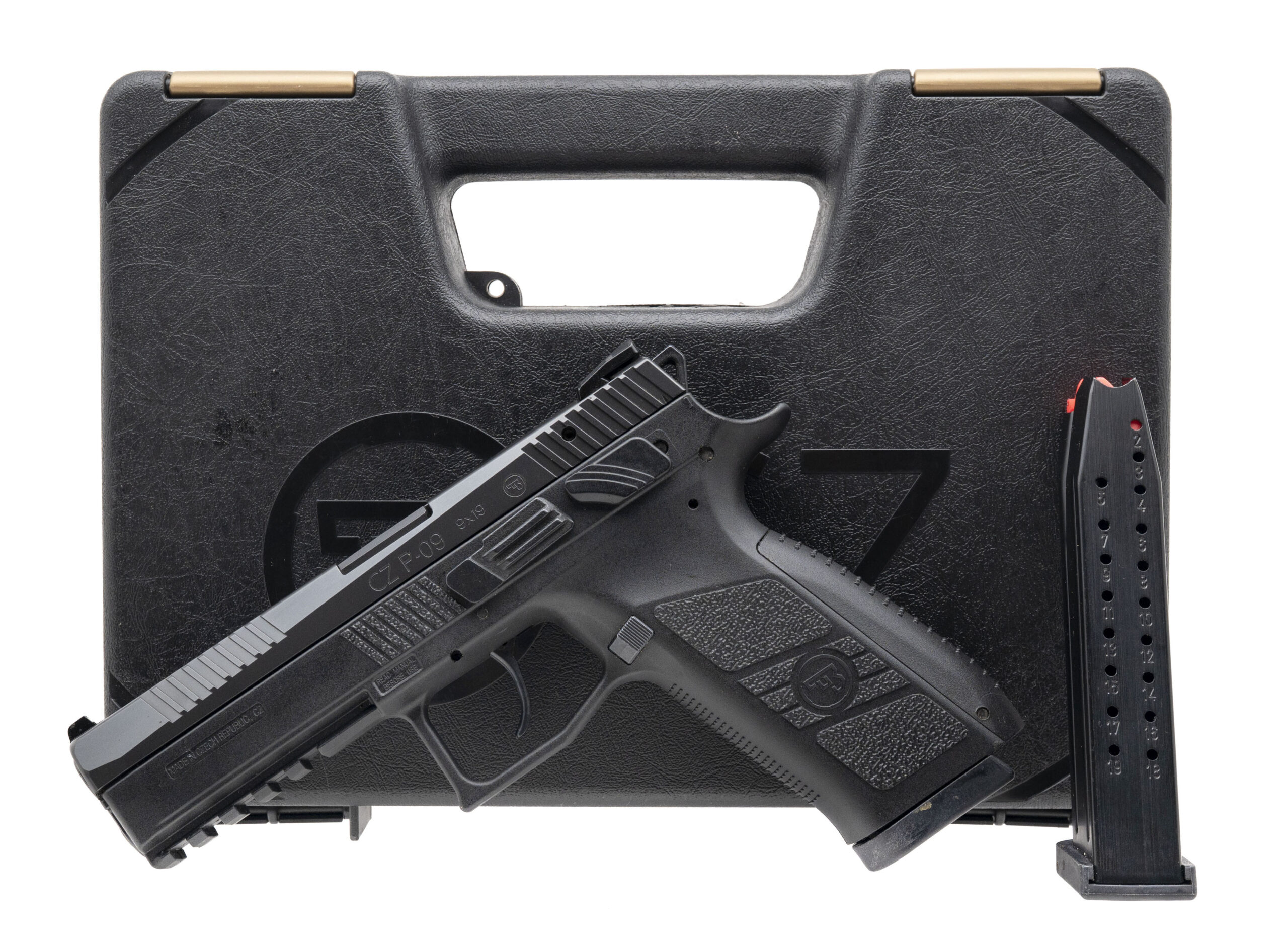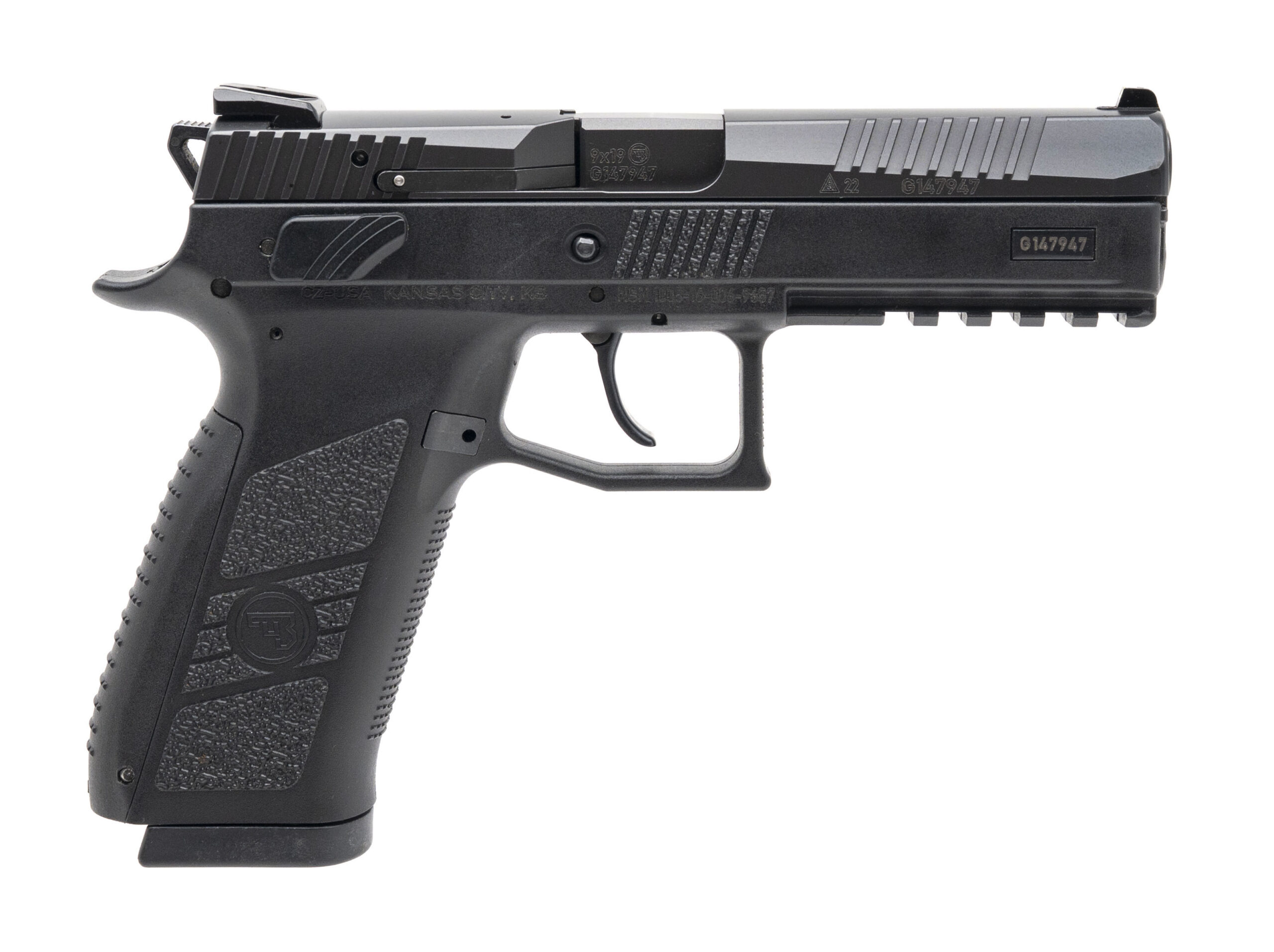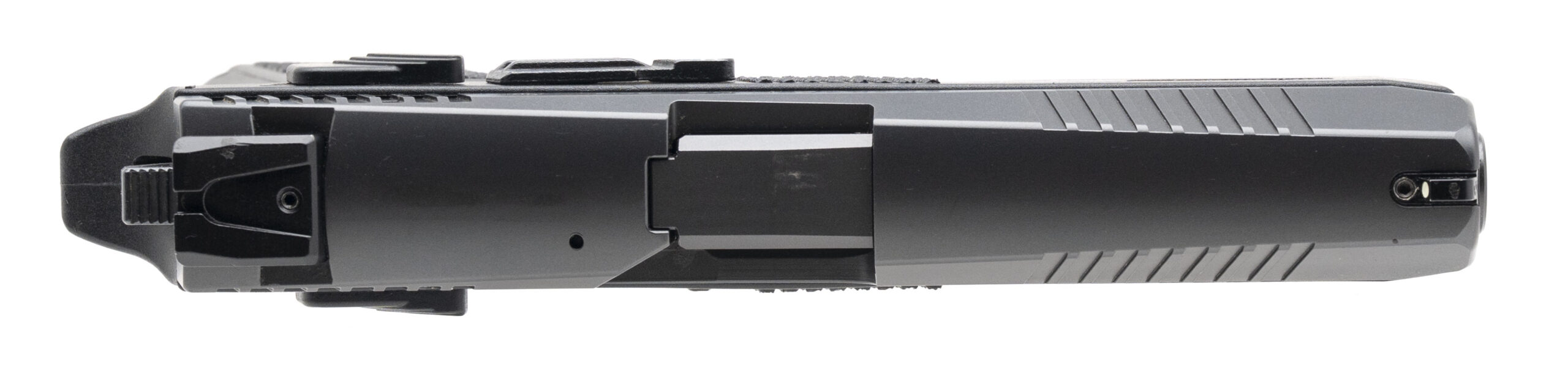 SN: G147947. Modern production, 9mm with a 4.5" barrel. Bore is excellent. Full size double-action pistol with 3 dot sights, accessory rail, ambidextrous decocker, matte black finish, and black polymer frame. Frame shows minor handling marks. Includes an additional magazine, 2 additional backstraps, and original case. Overall condition is near excellent.