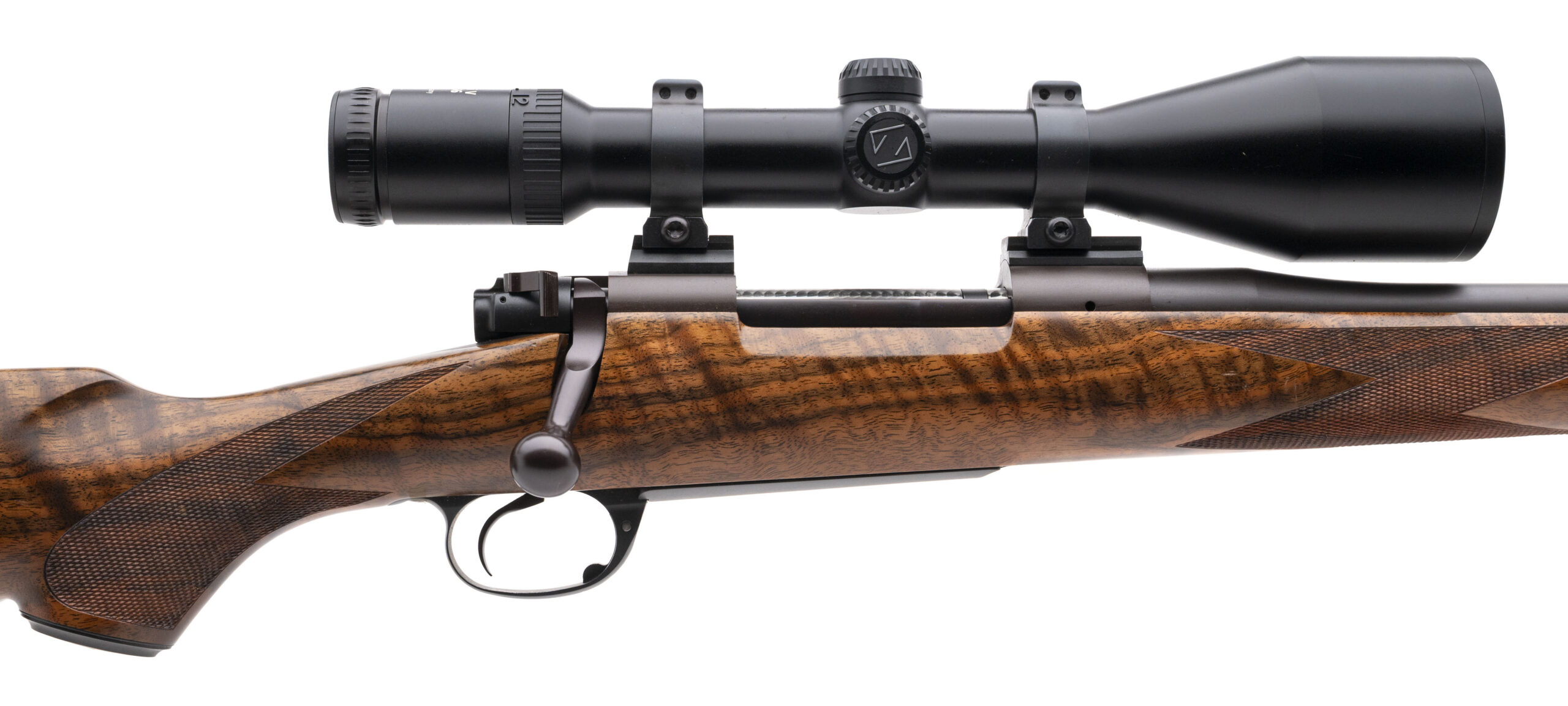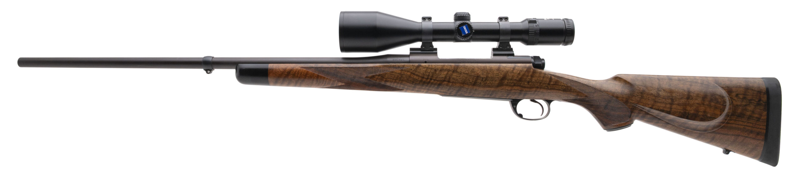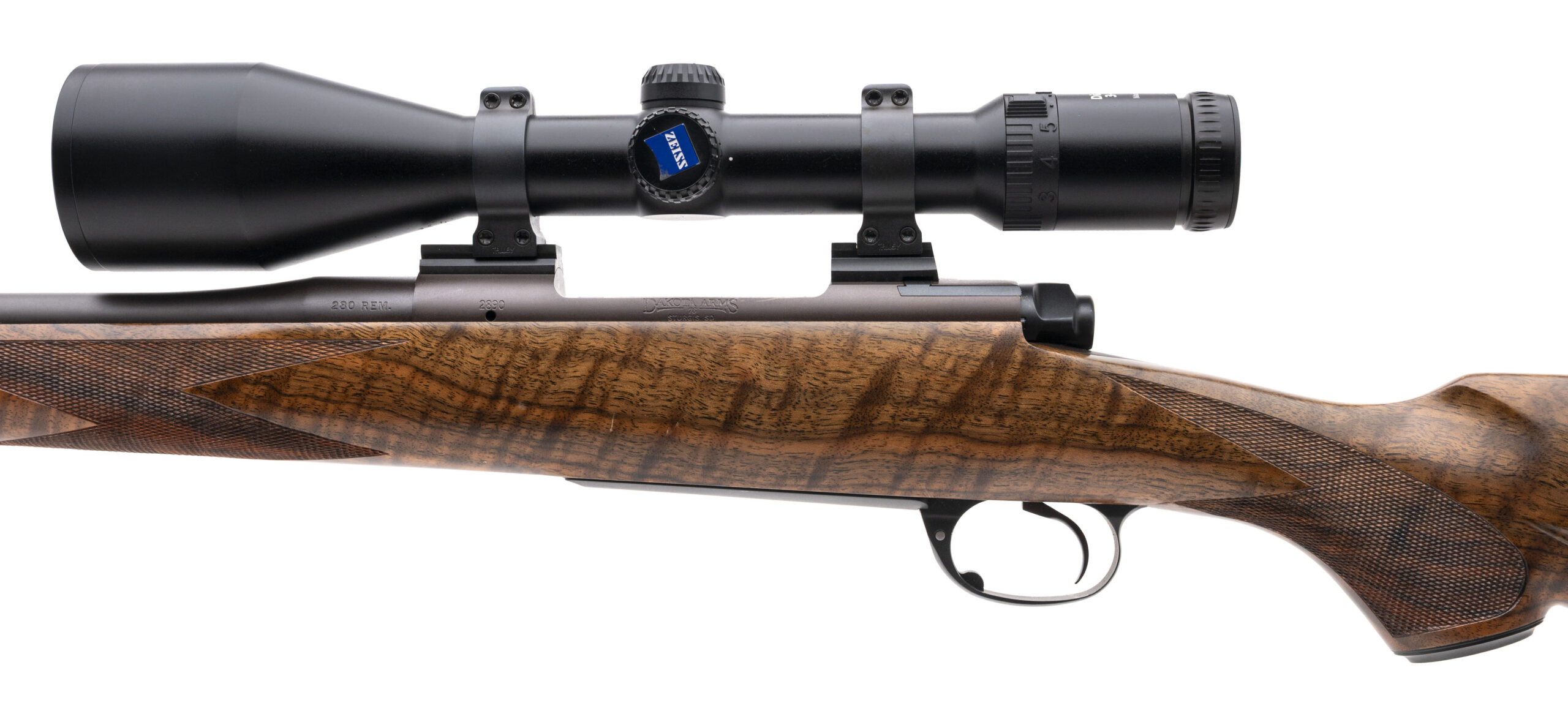 SN: 2890 modern production custom built bolt action hunting rifle chambered in 280 Rem with a 23" round barrel, barrel band sling swivel and Zeiss Diavari 3-12x56 scope with Talley rings and bases. Matte blued metal finish with a jeweled bolt and hinged bottom metal. Classic hand made highly figured checkered walnut stock with an ebony forend tip, pistol grip cap, inlaid rear sling stud and a Pachmayr recoil pad. Some light handling marks, overall in very good condition with an excellent bore.