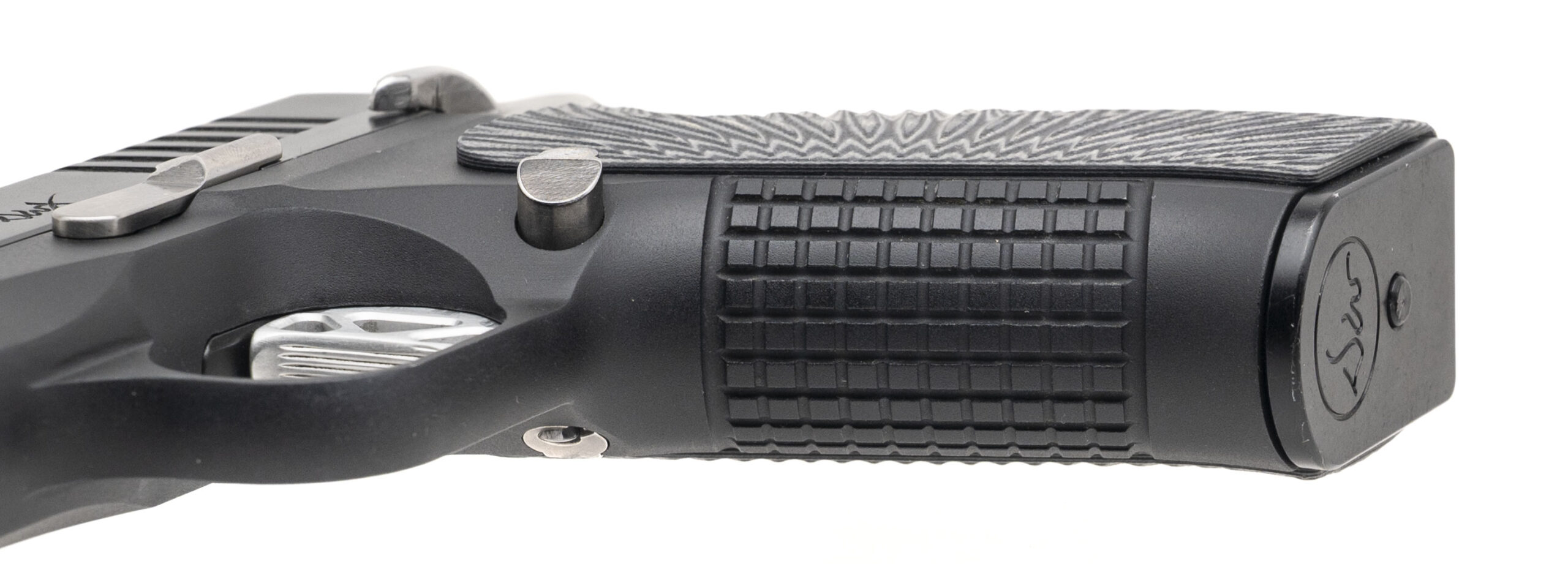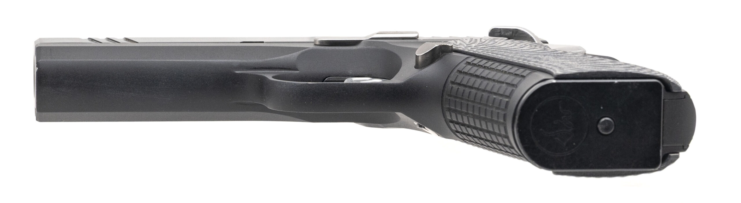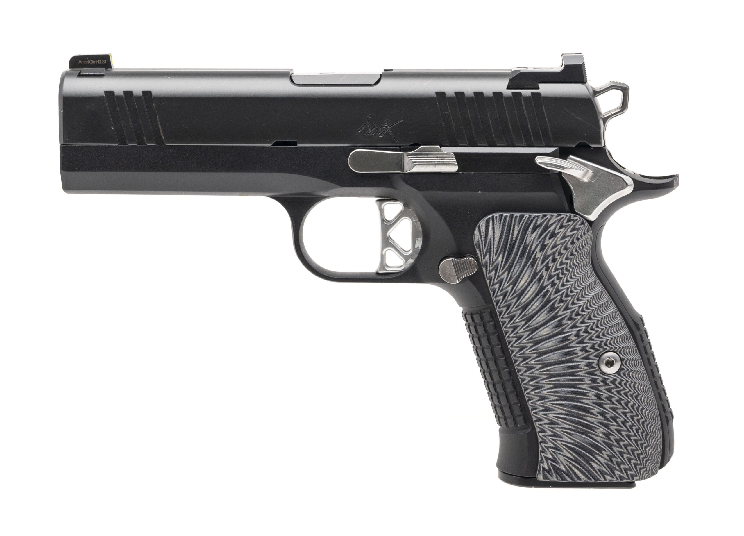 SN: X2201358. Modern production, 9mm with a 4" match grade bull barrel. Bore is bright with strong rifling. Compact alloy frame double stack 1911 style pistol with stainless accents, g10 grips, and a tritium front sight. Near excellent condition overall. Comes with DW carry bag and an extra magazine.