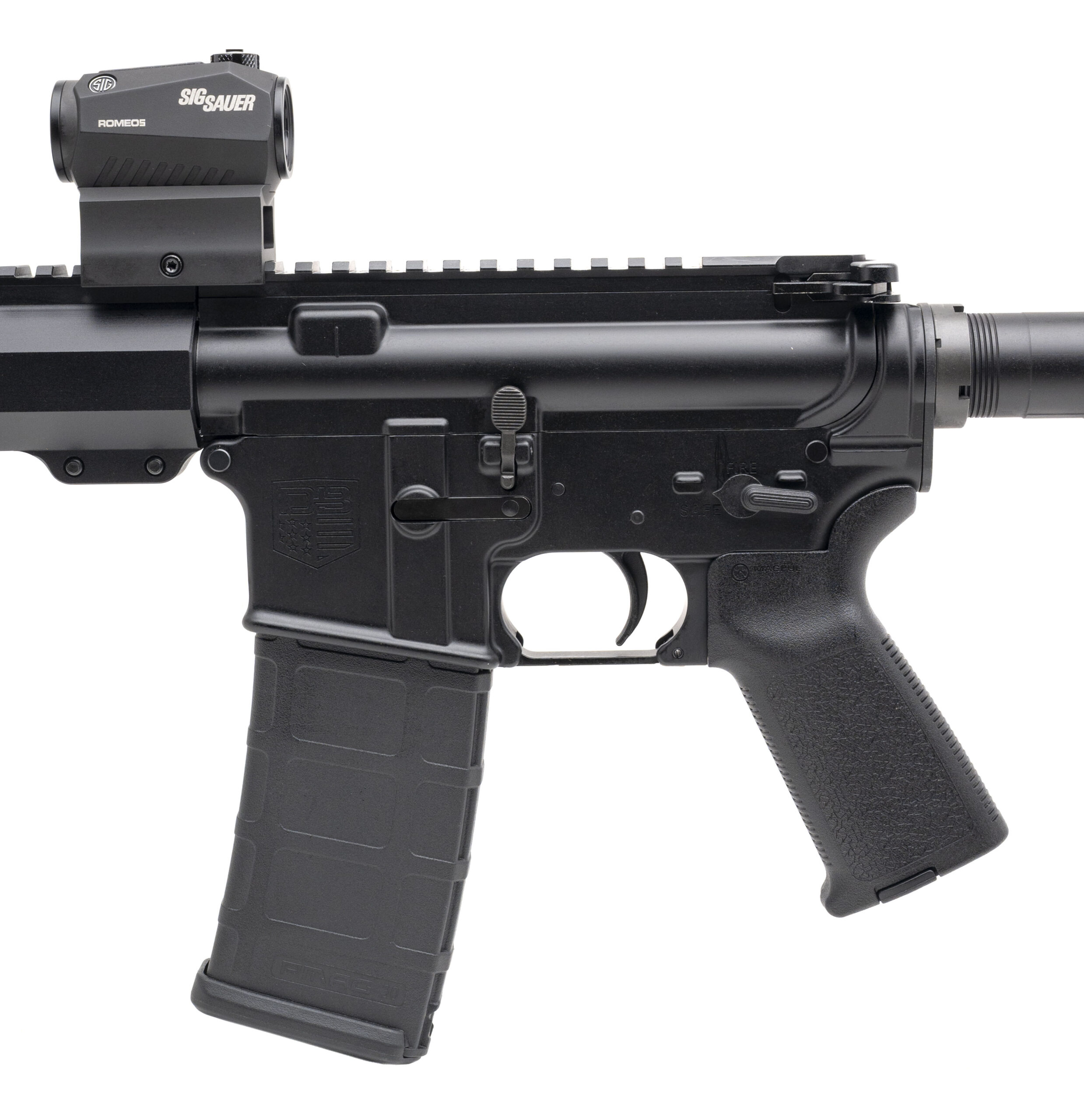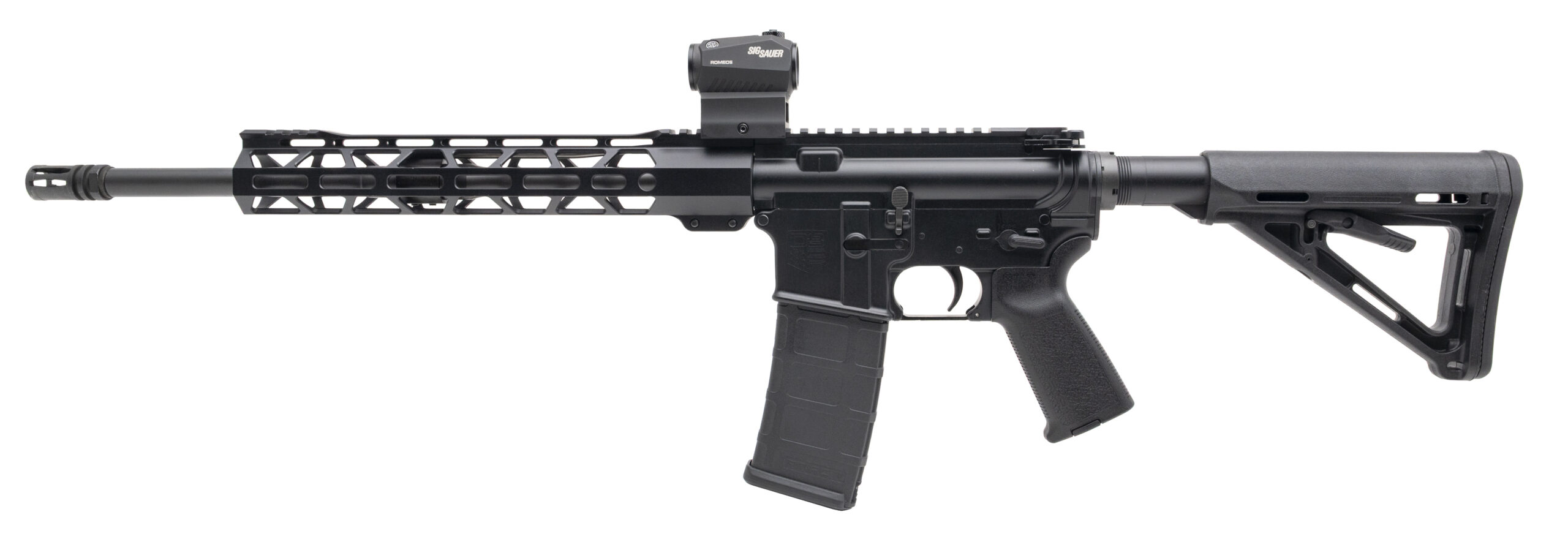 SN: DB2137120. Modern production, 5.56 NATO with an 16" barrel. Bore is bright with strong rifling. Semi-auto tactical rifle with a Sig Sauer Romeo5 red dot optic. Overall condition is verygood.