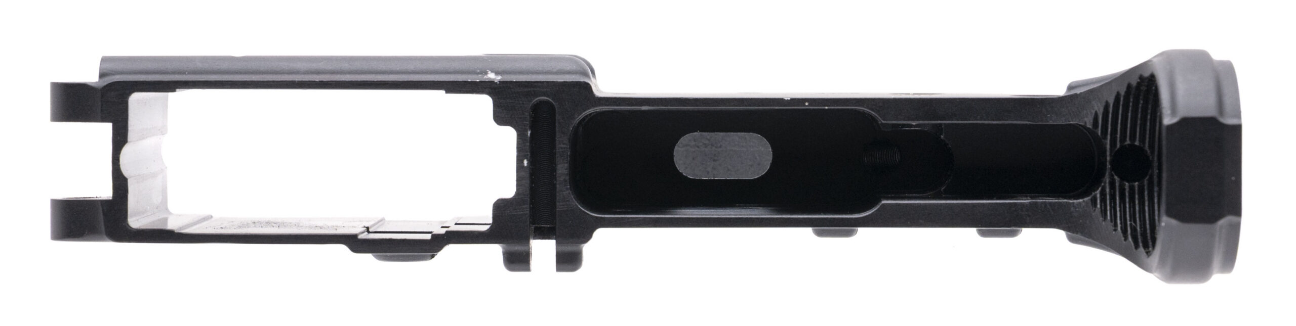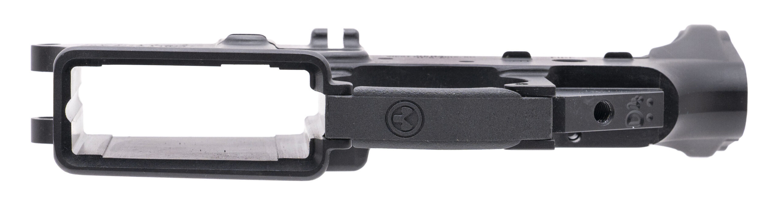 Serial number DP15001727. This post-ban stripped DPMS DP-15 lower is marked "multi" for caliber & carries a black anodized finished. It is in A2 profile with full magazine release fencing, enlarged webbing for the front take down pin & reinforced on either side of the buffer tube hole. Comes with a polymer Magpul MOE® Enhanced Trigger Guard already installed.