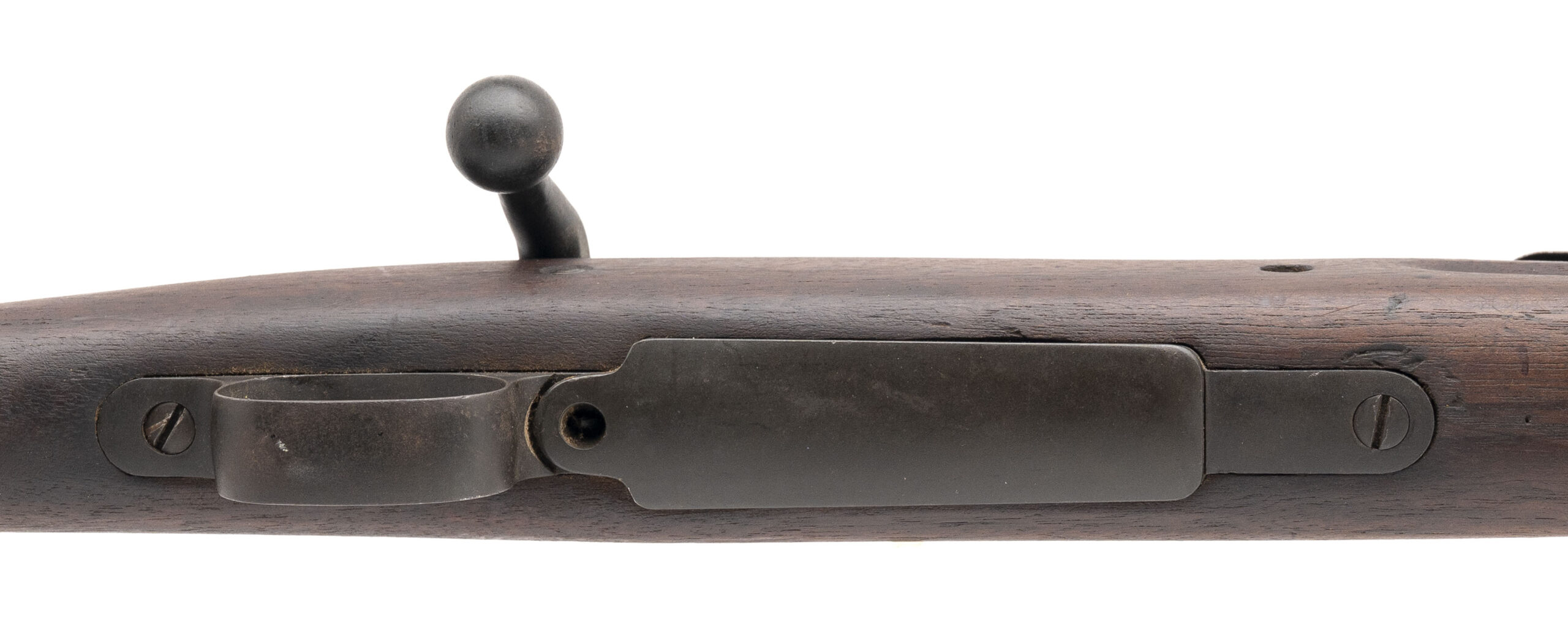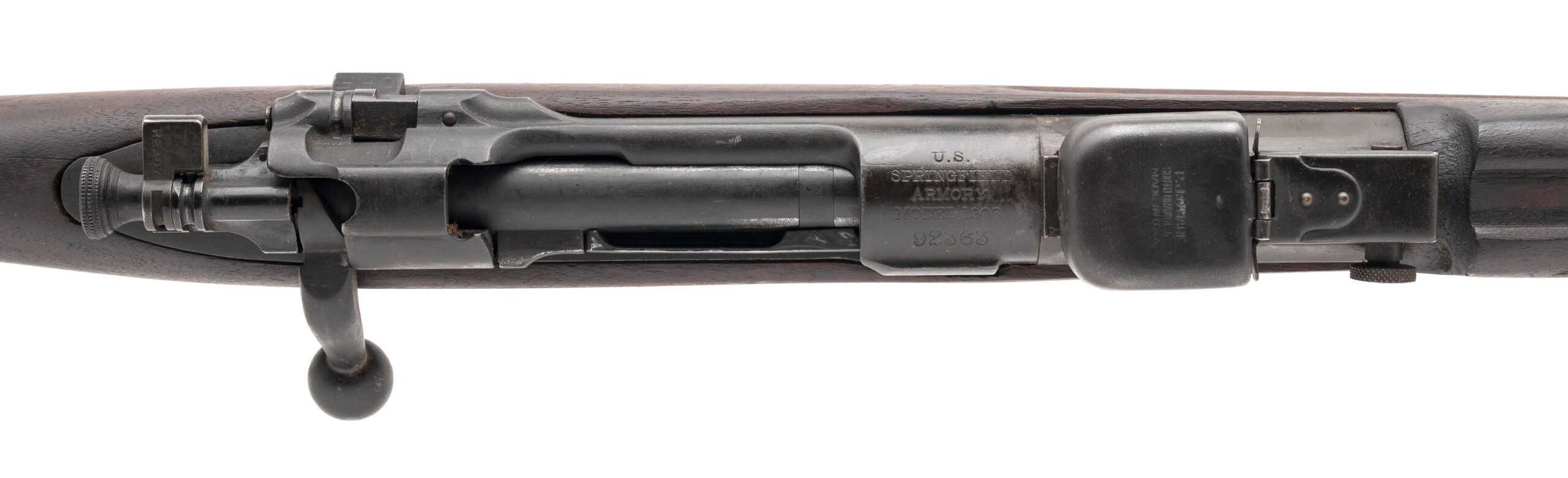 Serial No. 92363, manufactured in 1905, .30-06 Springfield, 24” round barrel marked “S.A. / Flaming Bomb / 1-19.” Rifle remains in very good overall condition, showing only small handling impressions. The barrel was likely replaced postwar, as indicated by its later 1919 date. Rifle is equipped with O’Hare front and rear sight protectors, commonly seen on National Match rifles in the postwar era. Action is smooth and functions correctly. A well-preserved early production Springfield Model 1903, blending early pre-WWI manufacture with later competition-style upgrades.