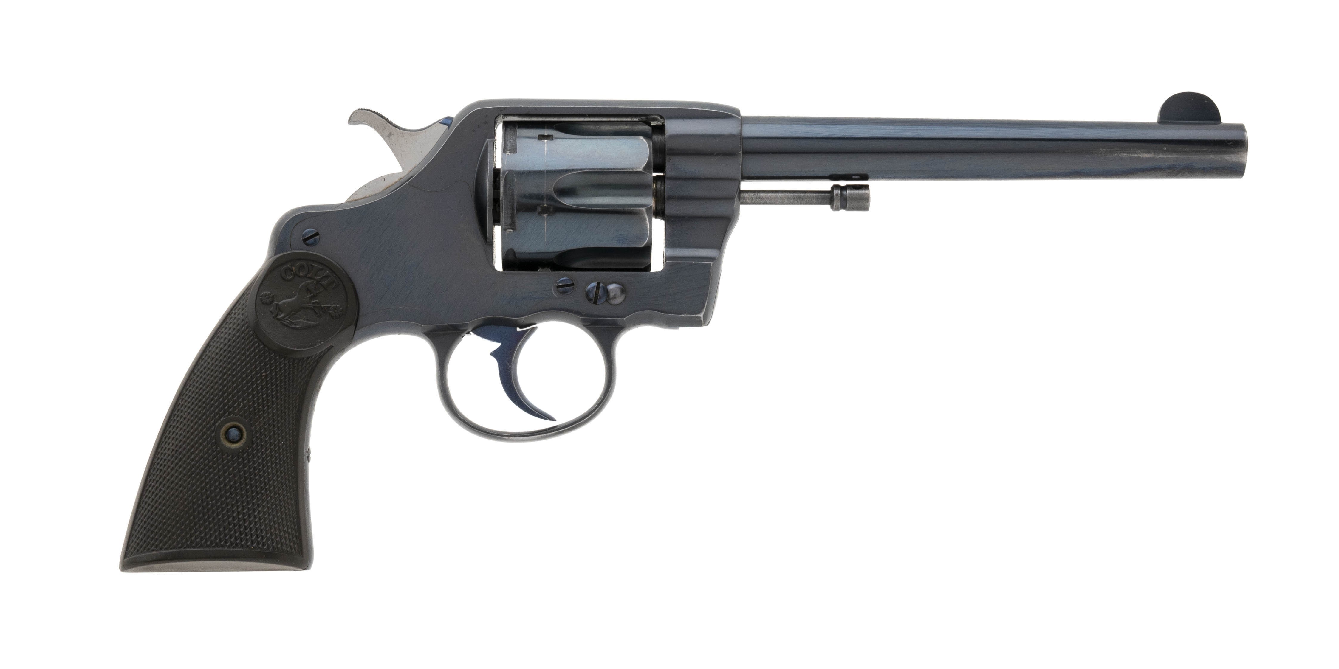 Excellent Colt Civilian New Navy Model of 1895 Revolver. Made in 1904. Beautiful gun with 98% of the original blue finish. Trigger and hammer have fired blue. Grips are excellent. There is not much not to like about this gun!
