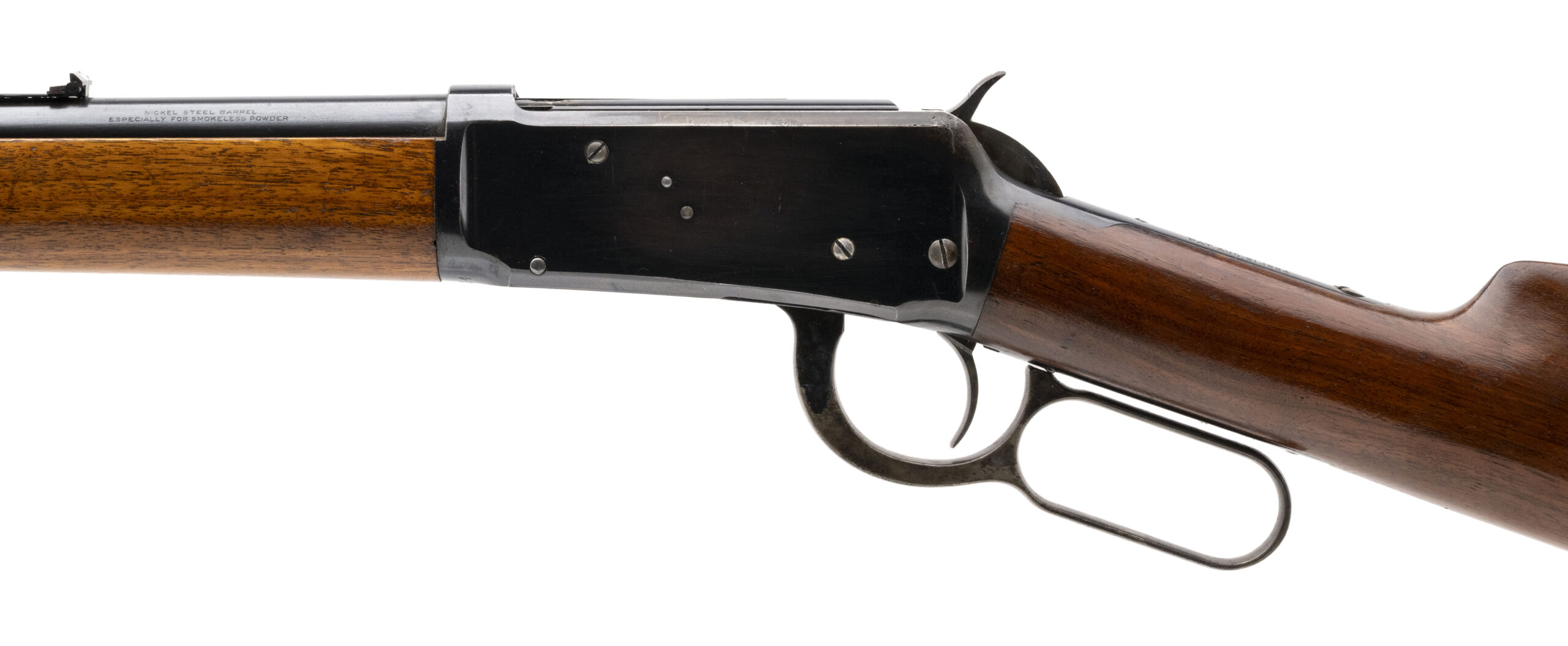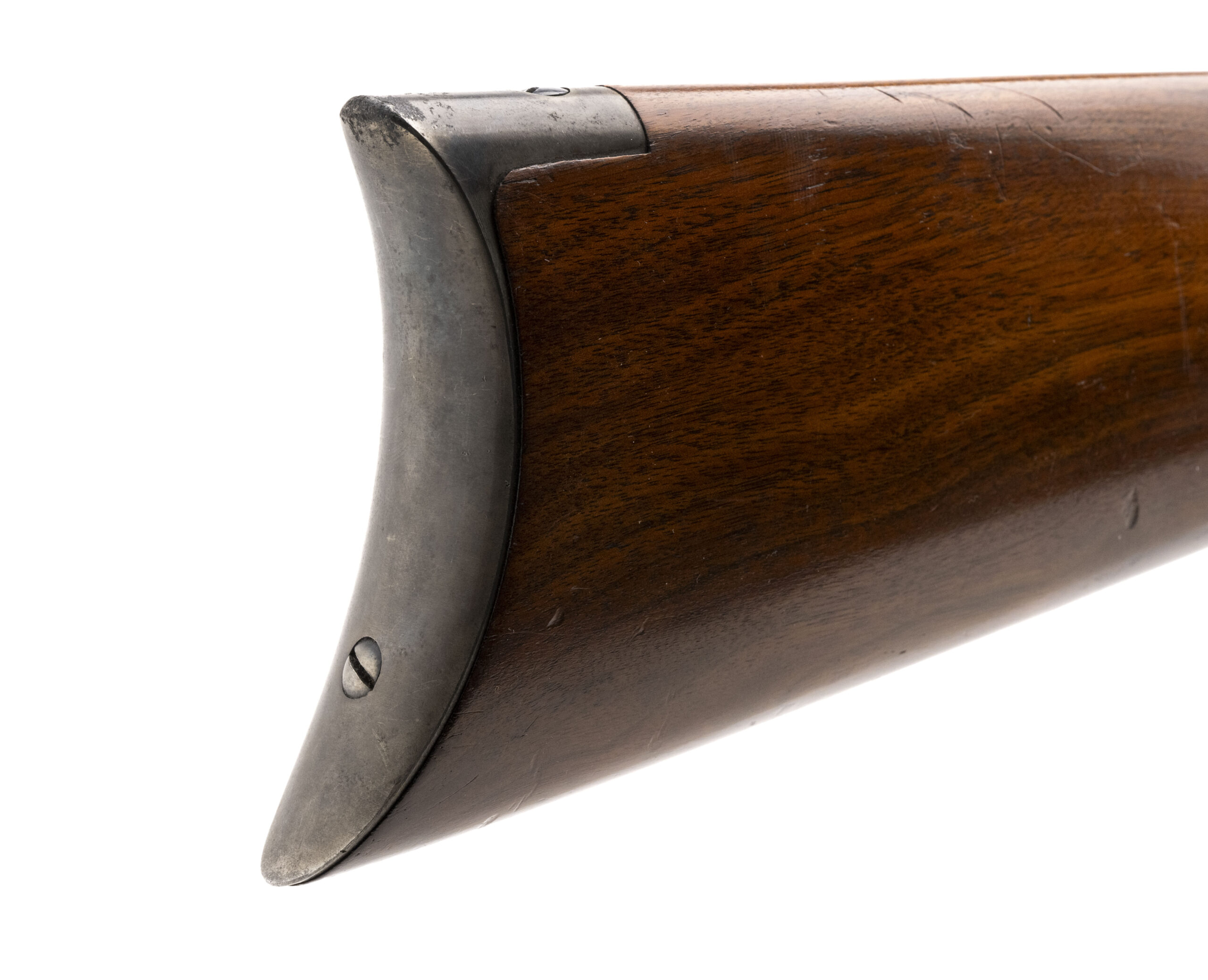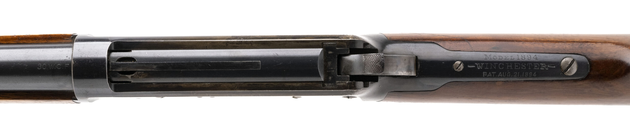 Serial number 52414. Made in 1896. 30 WCF caliber with a 26” barrel. This Gun is in excellent condition with 97% of the original blue on the barrel and magazine tube. The frame has approximately 92% of the original blue with the greatest concentration being on the top edges of the receiver. The wood is excellent and untouched. Both the lever and the butt plate have muted case colors.