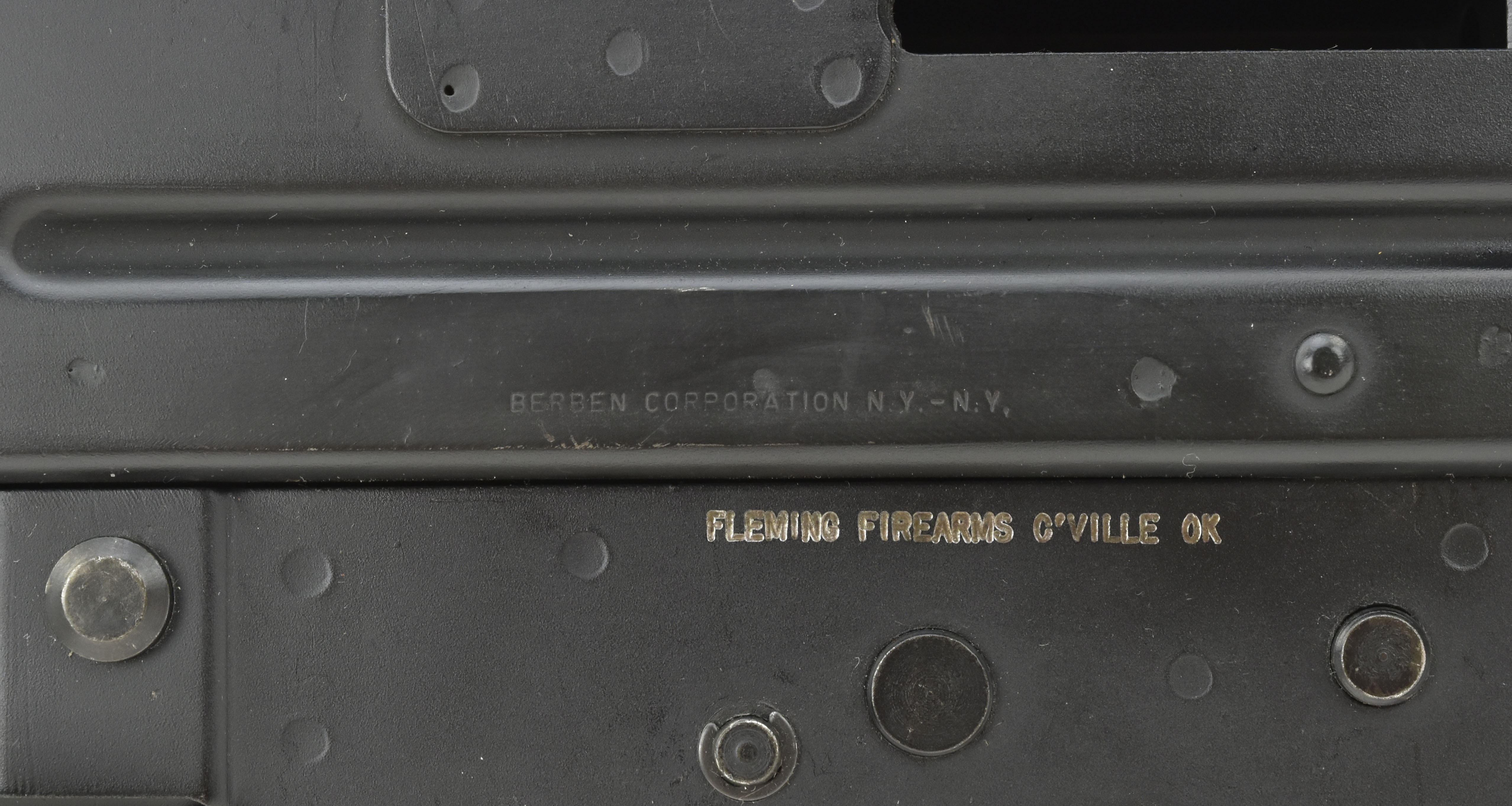 Fleming Beretta AR-70 .223 caliber machine gun. Converted by Fleming Firearms with bipod forearm and fixed stock. All NFA rules apply.