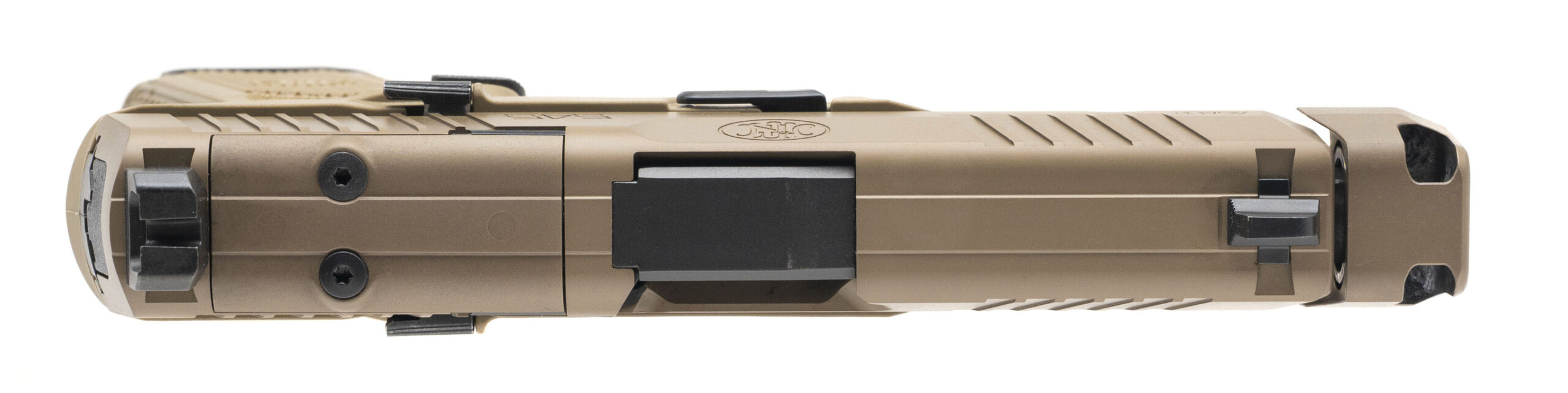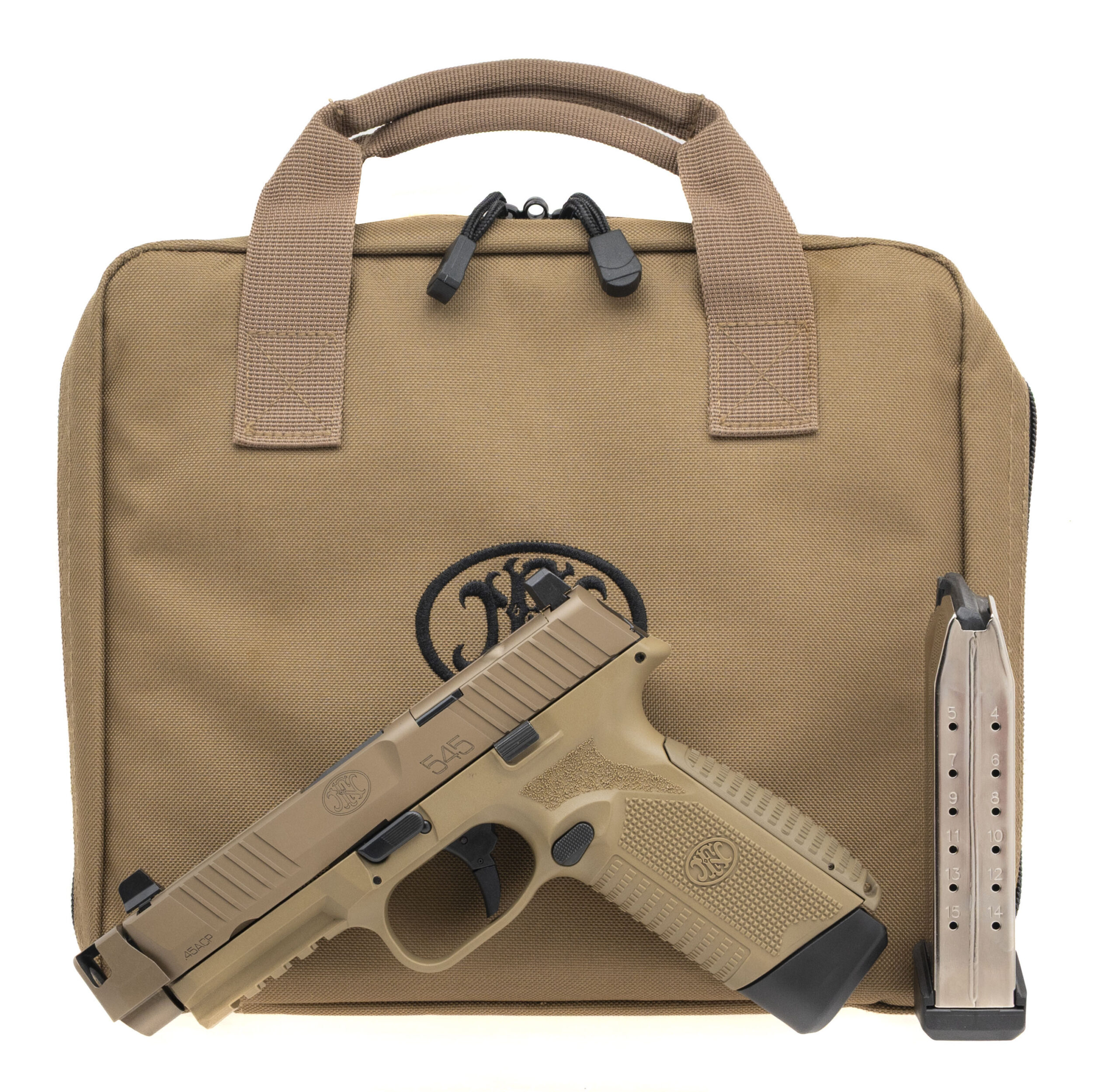 SN: BBP0068648. Modern production, .45 ACP with a 4.1" barrel w/compensator. Bore is excellent. Full size striker-fired pistol with an optics ready slide, co-witnessed front & rear sights, ambidextrous controls, accessory rail, and FDE finish & polymer frame. Overall condition excellent. Includes an additional magazine, and soft carry case.