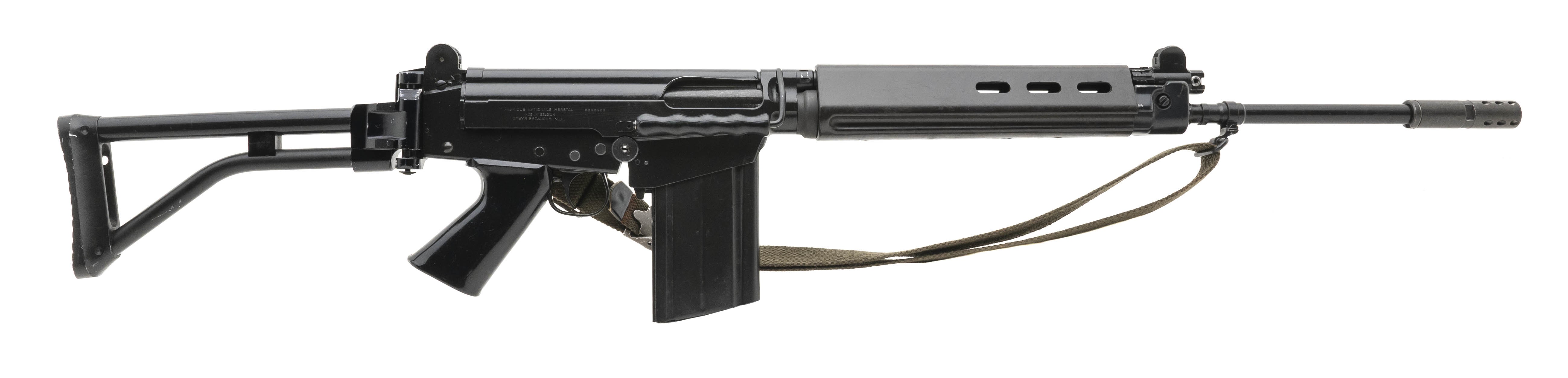 SN: 2505928. Original Belgian made FAL rifle with 20" barrel and muzzle brake. Type III receiver. The bore is excellent and the action works perfectly. Has folding para stock and sling. Overall excellent condition.