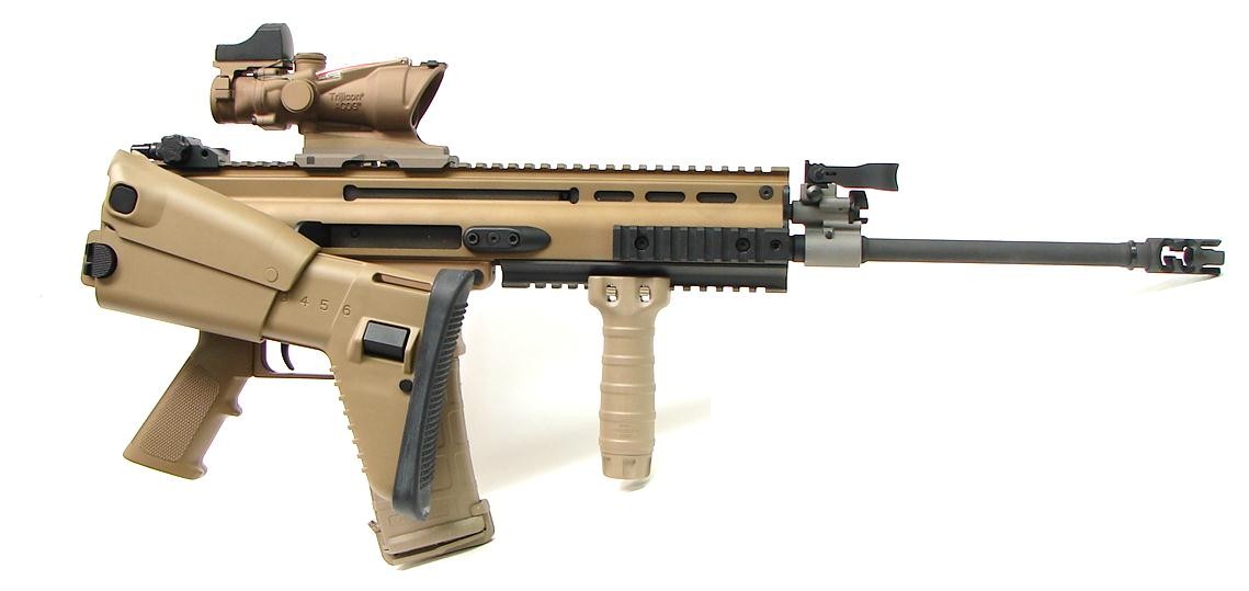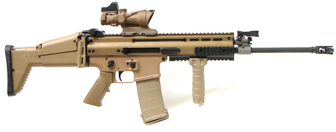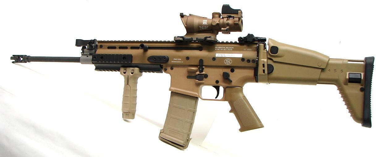 FN Scar 16S 5.56 X 45 caliber rifle. Scar Light Model Trijicon ACOG with Dr. Optic reflex sight, Tango Down grip and 1-30 round (R12251)