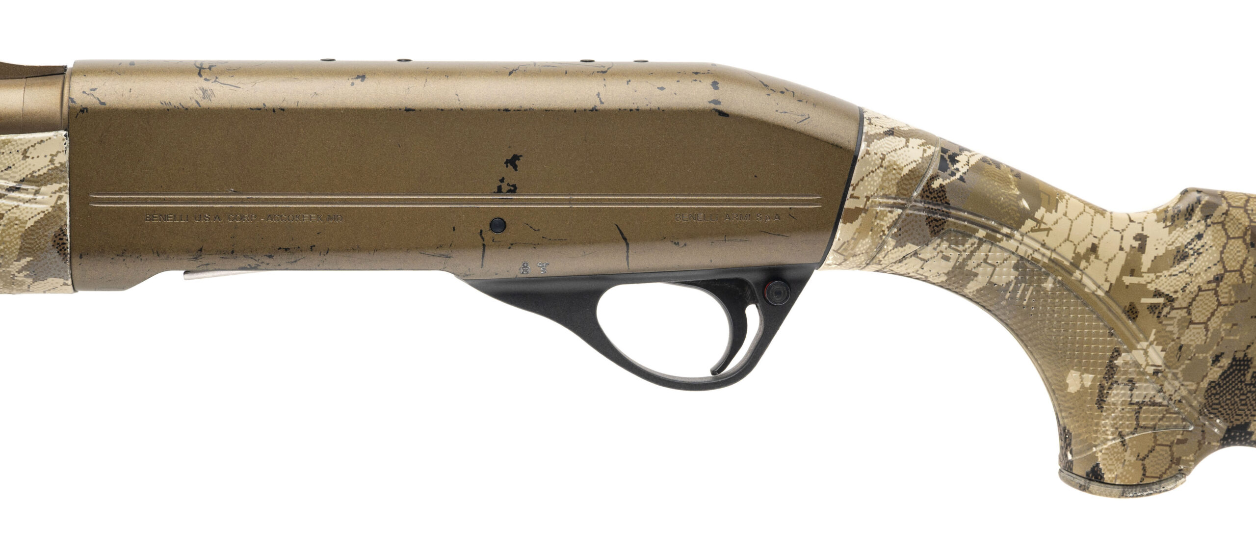 SN: BM84294T modern production 20 gauge semi-auto field shotgun with a 26" vent rib barrel, fiber optic front bead 3" chamber and screw in choke. Bronze metal finish with synthetic camo furniture and a 14.5" LOP to the original pad. Moderate wear from field use, bore is excellent and action is smooth.