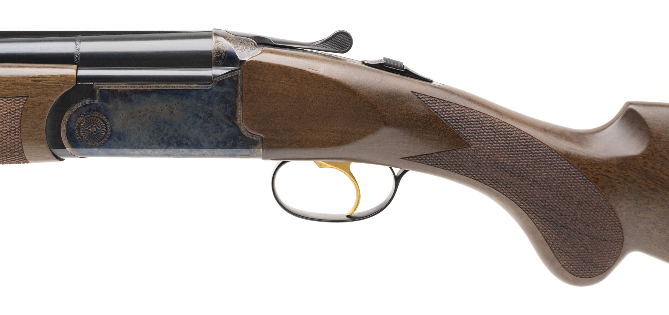 SN: FF026744. Modern production, 12 gauge with 28" vented mid-rib barrels w/removable chokes chambered for 2 3/4" & 3" shells. Bores are excellent. Over/under field shotgun with a fiber-optic front sight, color case hardened receiver, blue finished barrels, and checkered wood stock & forend with a 14.5" LOP. Finish & stock show light field wear. Includes an additional choke, and original case. Overall condition is very good.