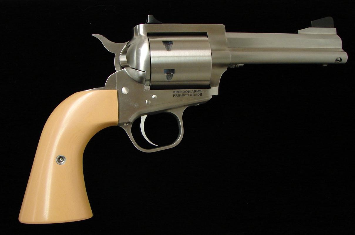 Freedom Arms 97 Premier Guard .357 Magnum caliber revolver. Special order model with 4 1/4" octagon barrel and ivory Micarta grips. New. Price may change without notice.